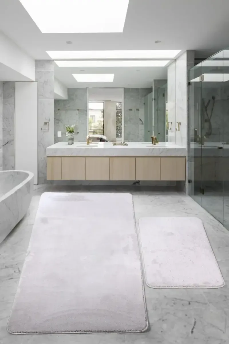 The Relax Gray Bathroom Rug Mat Set has a design that will completely change the atmosphere of your bathroom. Its modern and stylish gray color easily adapts to all kinds of bathroom decorations. The two different sized rugs included in the set are suitable for use in different areas of your bathroom. The large rug provides effective protection against water splashes when used in front of the shower or bathtub. The smaller rug offers a stylish welcome when used in front of the sink or at the entrance of the bathroom. These rugs, made of high-quality material, are long-lasting and durable. Thanks to its easy-to-clean feature, it offers hygienic use. Its non-slip base provides safe use, especially on wet floors, and minimizes the risk of falling. Its soft texture helps you relieve the tiredness of the day by massaging your feet. It not only adds an aesthetic appearance to your bathroom, but also creates a comfortable and safe environment. The Relax Gray Bathroom Rug Mat Set is both a useful and stylish choice. It is an ideal product to change the atmosphere of your bathroom and make you feel more special. Experience quality and comfort together in your bathroom, one of the most special corners of your home. This set will be an indispensable part of your bathroom and will accompany you for many years. If you are looking for a modern touch in your bathroom, the Relax Gray Bathroom Rug Mat Set is for you! Relax while relieving the stress of the day, with the softness and warmth you will feel under your feet. Make every moment you spend in your bathroom more enjoyable. This set is not just a bathroom rug, but also a lifestyle. It is a great option to elevate the ambiance of your bathroom and impress your guests. Moreover, it is a safe option for families with children thanks to its non-slip base. It helps prevent bathroom accidents and allows your children to move safely. Experience both elegance and safety in your bathroom with the Relax Gray Bathroom Rug Mat Set.