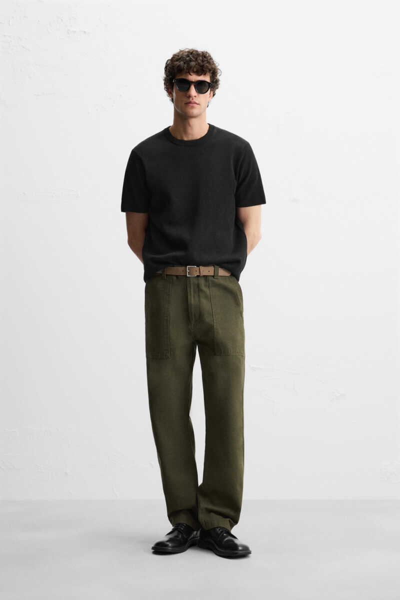 RELAXED FIT KNIT T-SHIRT - Black is a candidate to be an indispensable part of your wardrobe. It is an ideal choice for those who want to add effortless elegance to their daily style without sacrificing comfort. This t-shirt allows you to move freely all day long thanks to its relaxed fit, and easily adapts to any environment with its modern and minimalist design. The elegance of black combines with the knitted texture of the t-shirt to offer a sophisticated look. Whether you combine it with jeans, shorts or skirts; RELAXED FIT KNIT T-SHIRT - Black will always complement your style. The crew neck detail adds a modern touch to the t-shirt, while the short sleeve design helps you stay cool in hot weather. The soft texture of the cotton fabric gently touches your skin and provides comfort all day long. RELAXED FIT KNIT T-SHIRT - Black is not only stylish but also a practical choice. It is always ready to use thanks to its easy washing and ironing features. Whether you are doing your daily activities, meeting with friends, or traveling, this t-shirt allows you to prioritize your comfort without sacrificing your style. The timelessness of the black color makes this t-shirt a piece you can use for years. Thanks to its timeless design and high-quality material, RELAXED FIT KNIT T-SHIRT - Black will be one of the most valuable pieces of your wardrobe. This t-shirt, which adapts to every style, allows you to express your personal style while offering comfort and elegance together. Always feel good and freely reflect your style with the RELAXED FIT KNIT T-SHIRT - Black. This t-shirt is not just a garment, but also a lifestyle. It is a perfect choice for those looking for comfort, elegance and quality together. Discover this must-have piece in your wardrobe now and bring a new breath to your style. Always feel stylish, comfortable and confident with the RELAXED FIT KNIT T-SHIRT - Black.