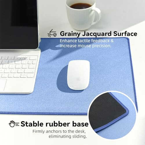 Smooth Gliding: Experience flawless mouse control and precision with our mouse pad’s smooth, frictionless surface. It's engineered for optimal glide, enhancing the performance of your mouse for gaming, professional, and everyday computing tasks. Grainy Jacquard Surface Design: Utilizing innovative jacquard weaving technology, this mouse pad boasts an elegant appearance. It's designed to enhance tactile feedback, and increase mouse precision. Non-Slip Stability: Designed with a skid-proof base, this mouse pad prevents sliding, providing a secure foundation for your mouse movements during intense gaming sessions, and meticulous tasks at home or in the office. Natural Rubber with Edge Stitching: Crafted from high-quality rubber material and enhanced with neatly stitched edges, this mouse pad delivers unparalleled comfort and durability. Waterproof Coating & Easy to Clean: Our mouse pad is designed with a waterproof coating that allows liquids to form beads and roll off with ease. The surface is extremely easy to clean, ensuring that a simple wipe is all it takes to maintain its pristine appearance.