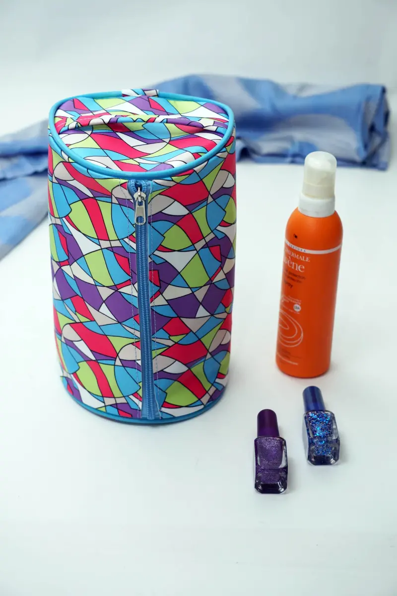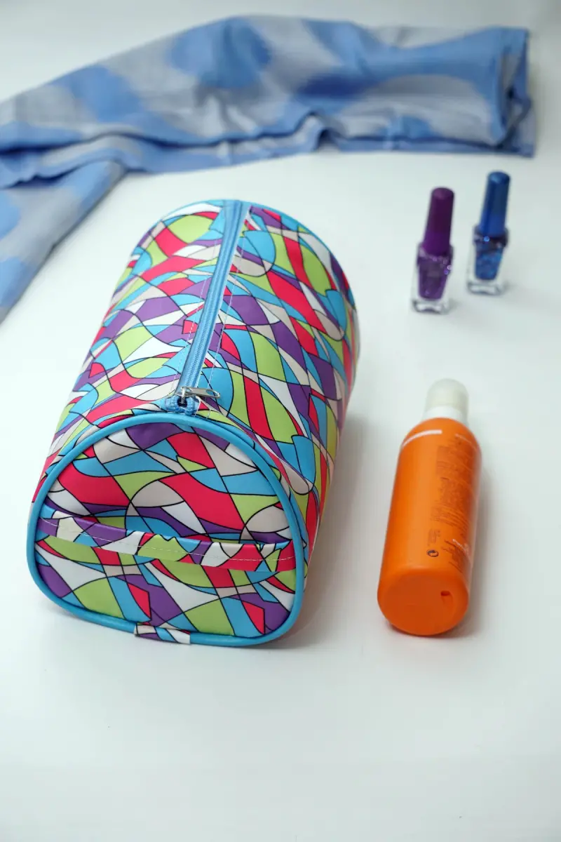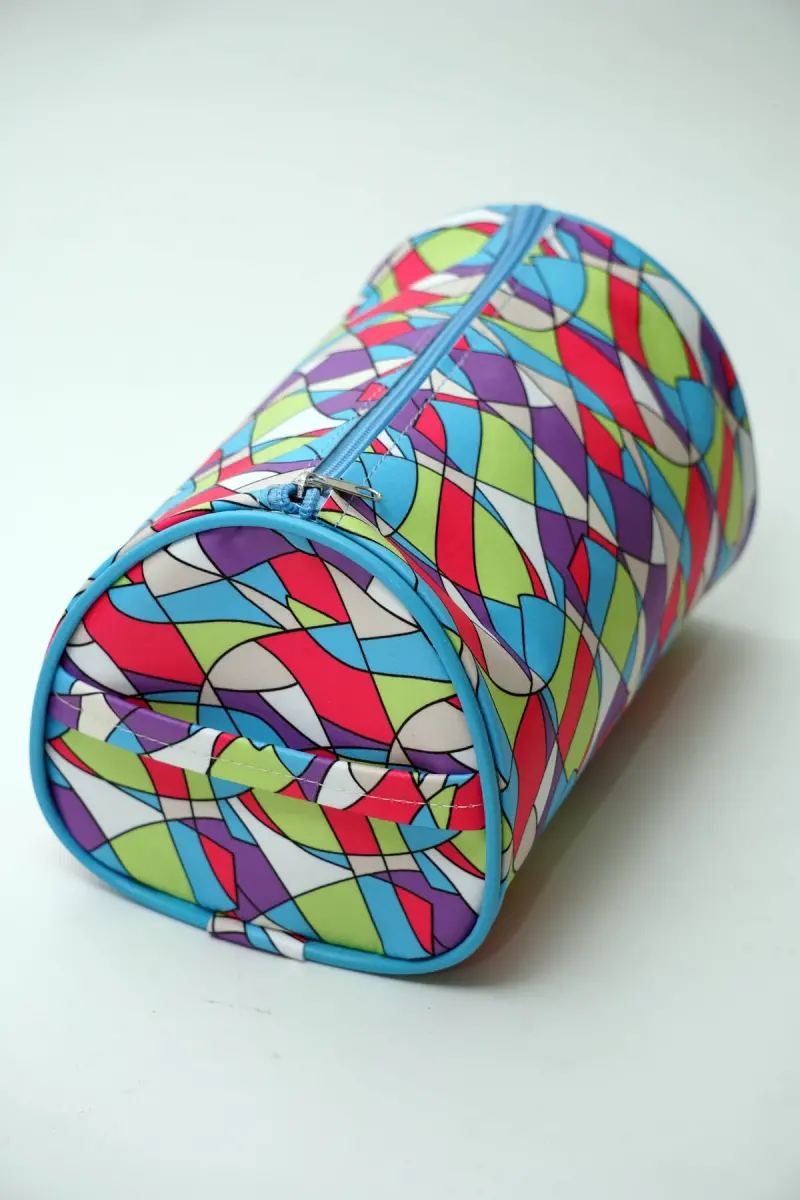 Renkli Desenli Silindir Şık, Kullanışlı ve Dayanıklı Tasarım Kozmetik Çantası-Mor