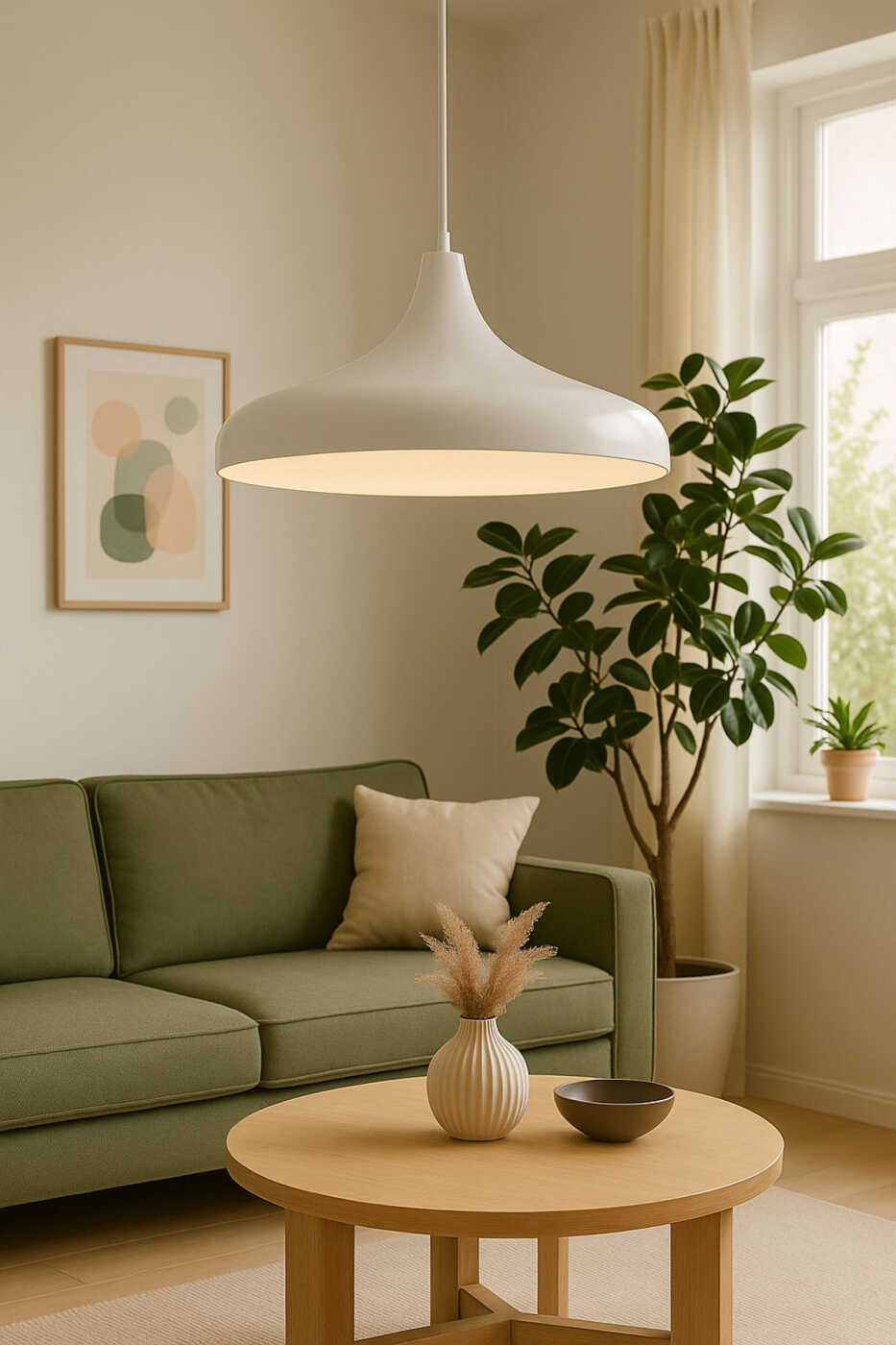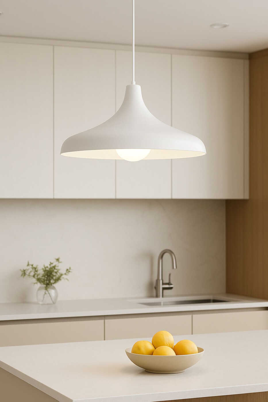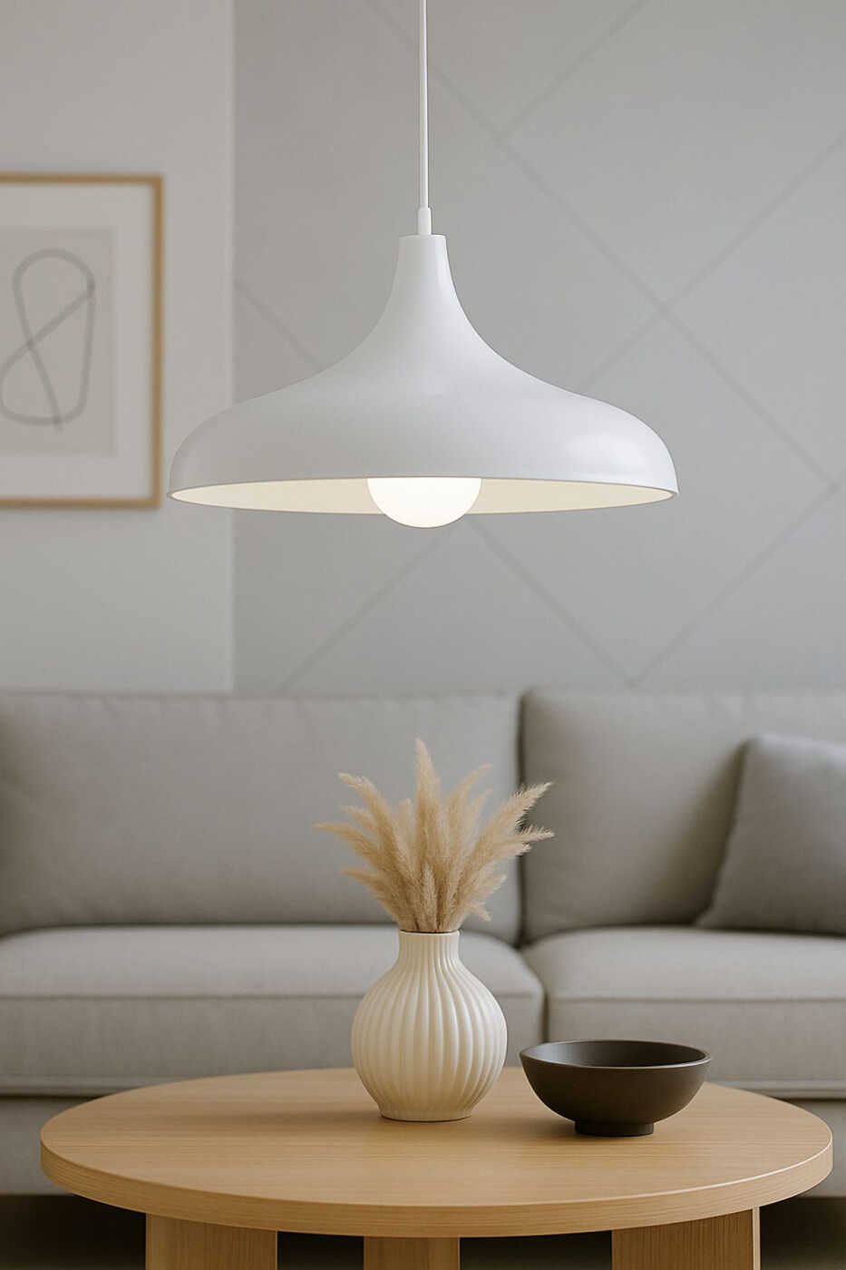 The single pendant chandelier model offers a modern and minimalist aesthetic. Its white color easily blends in with any decor and adds freshness to the space. Its metal body ensures durability and longevity.