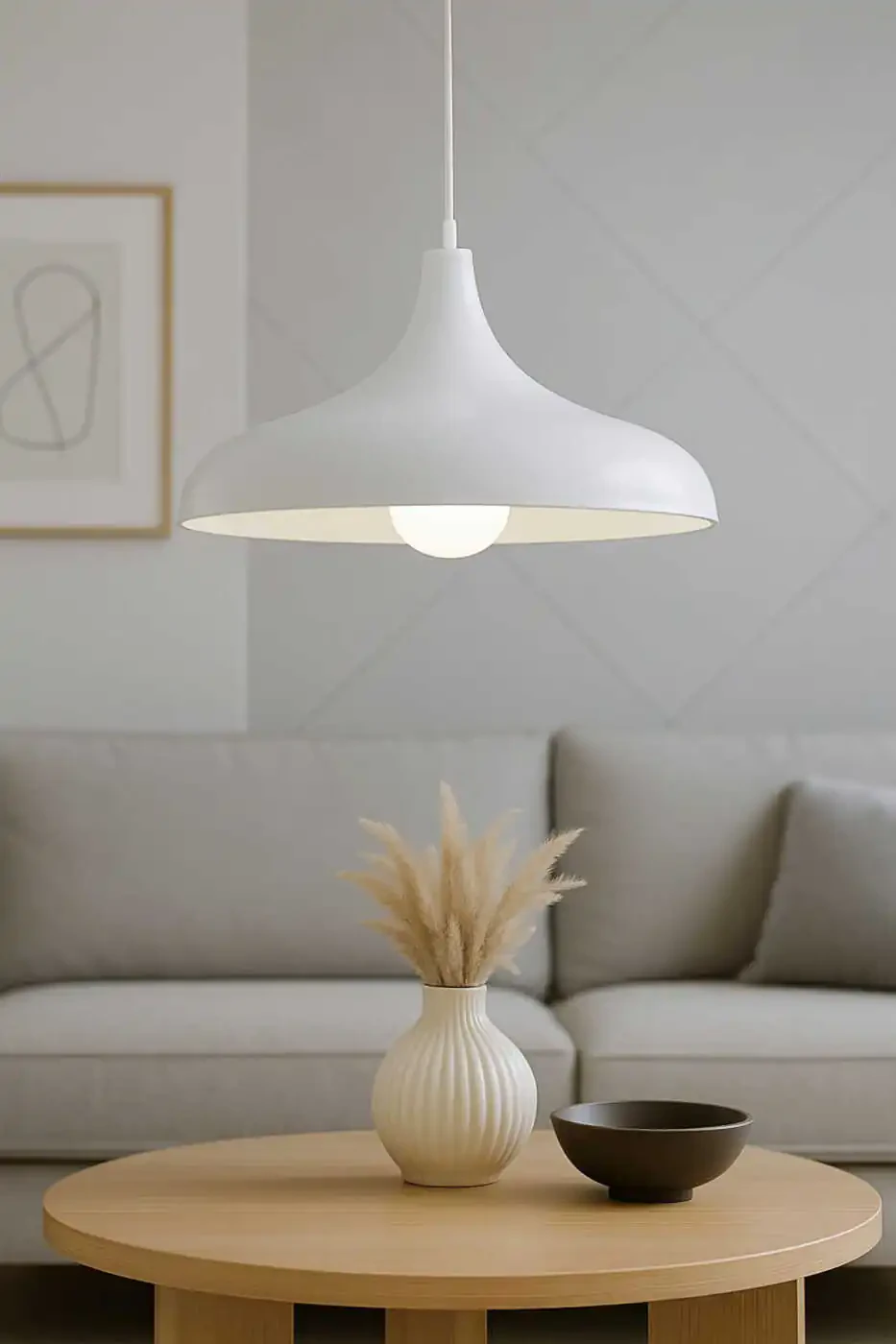 Модель с одним подвесным светильником предлагает современную и минималистичную эстетику. Ее белый цвет легко сочетается с любым декором и придает пространству свежесть. Металлический корпус обеспечивает прочность и долговечность.