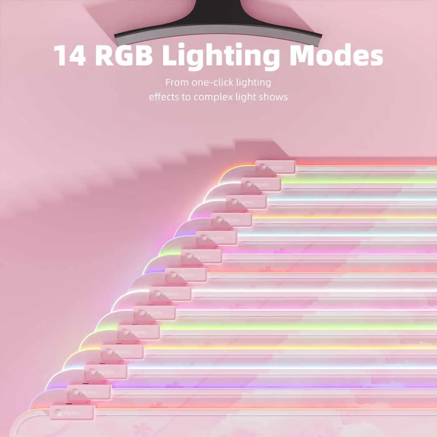 The RGB Gaming Mouse Pad Pink is an excellent choice for a spacious and comfortable gaming experience. Its extended LED lighting illuminates your desk in style, while the non-slip rubber base keeps your mouse and keyboard firmly in place. With its XL size, providing ample space for both mouse and keyboard, the mouse pad is also an ideal surface for writing and drawing.