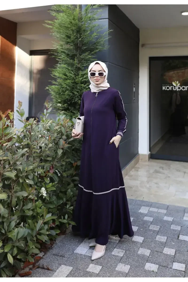 Ribana sport ferace - zamonaviy va faol hayot tarzini qabul qilgan ayollar uchun mo'ljallangan, nafislik va qulaylikni birlashtirgan maxsus buyumdir. Binafsha rangning oliyligini o'zida mujassam etgan bu ferace, ayrobin matosining noyob tuzilishi bilan kun bo'yi qulaylikni ta'minlaydi. To'rt fasl davomida garderobingizning ajralmas qismiga aylanadigan bu ferace, kundalik foydalanishda ham, maxsus kunlarda ham bemalol tanlanishi mumkin. Sport nafisligini sevuvchilar uchun ideal tanlov bo'lgan Ribana sport ferace, o'ziga xos dizayni va qulay detallari bilan e'tiborni tortadi. Nol yoqa kesimi zamonaviy ko'rinishni taqdim etsa, qulay qolipi harakat erkinligingizni cheklamaydi. 135 sm uzunligi feracega nafis uzunlik beradi va har qanday o'lchamga mos keladi. Ayrobin matosining terlatmaydigan, to'kiluvchan, yengil va elastik tuzilishi tufayli kun bo'yi o'zingizni qulay his qilasiz. Uni poshnali oyoq kiyimlari bilan kombinatsiya qilib, zamonaviy ko'rinishga ega bo'ling yoki sport oyoq kiyimlari bilan yanada qulay uslub yarating. Ribana detallari feracega dinamik havo beradi va sport nafisligini oldinga chiqaradi. Modeldagi holatidan ko'rinib turganidek, ferace to'liq qolip bo'lib, o'z o'lchamingizni tanlab mukammal moslikka erishishingiz mumkin. Agar siz garderobingizda ham zamonaviy, ham qulay muqobilni qidirsangiz, Ribana sport ferace siz uchun. Binafsha rangning chuqurligi va feracening sport detallari har qanday muhitda uslubingizni aks ettirishga yordam beradi.