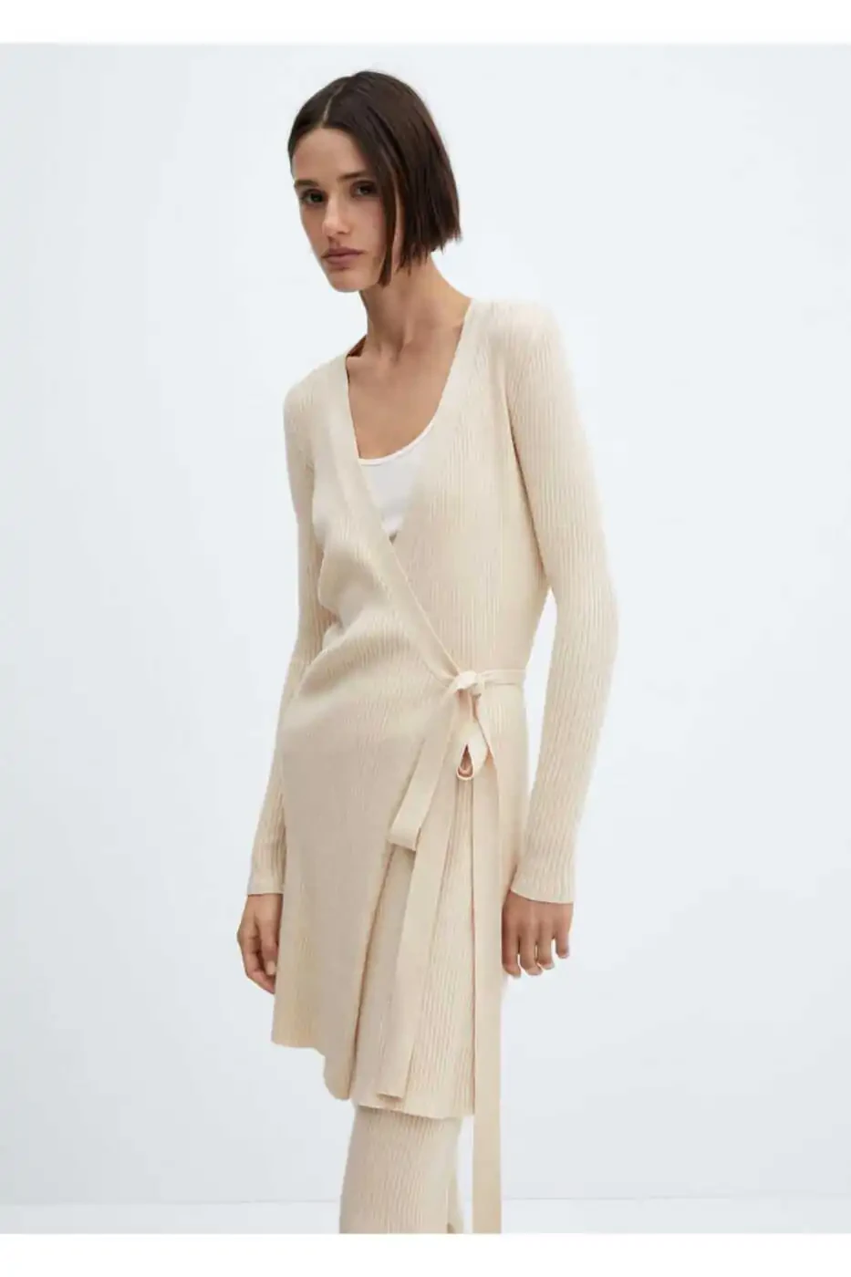 **Ipdan to'qilgan o'raluvchi anvelop tipli pardagi**Trendyol tomonidan jo'natiladigan bu zamonaviy pardagi o'zining noyob dizayni va yuqori sifati bilan e'tiborni tortadi.Ipdan to'qilgan trikotaj matosidan ishlangani uchun uzoq qulaylik yaratadi, midi uzunligi va anvelop tipidagi ko'rinishi juda nozik ko'rinish beradi. To'g'ri kesimi va V shaklidagi yoqasi uni har qanday kiyimga moslashishini ta'minlaydi, uzun qo'llari va torli detallari qo'shimcha uslub qo'shadi.50% viskoza, 28% poliester va 22% poliamid aralashmasidan tayyorlangan bu pardagi bir vaqtning o'zida yumshoq va bardoshlidir. 86 sm uzunligidagi orqa qismi to'liq himoya qiladi va uning total look xususiyati hatto alohida kiyinganda ham yorqin ko'rinishni ta'minlaydi.**Parvarishlash bo'yicha ko'rsatmalar:*** Qo'lda maksimal 30°C haroratda yuving* Oqartirgichdan foydalanmang* Maksimal 110°C da dazmollang* Quruq tozalashni qilmang* Kir yuvish mashinasida quritish mumkin emas