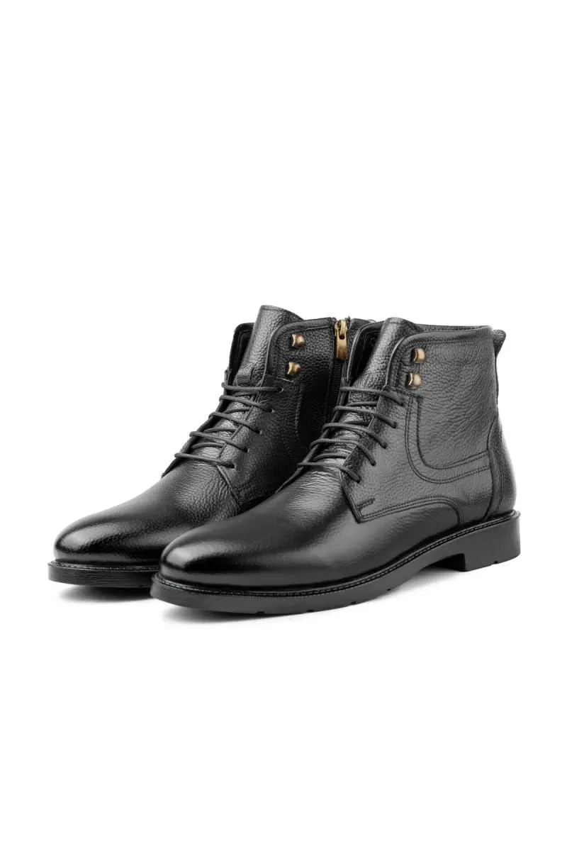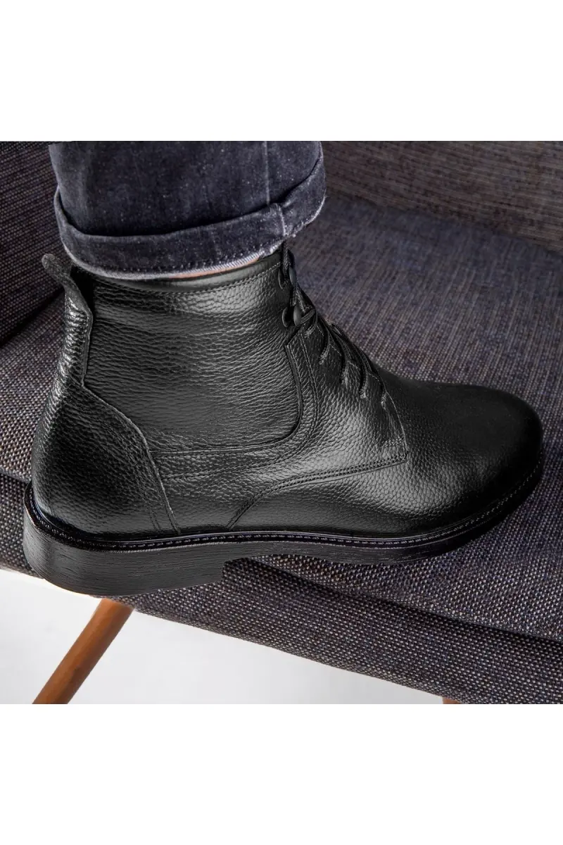 Rico Hakiki Deri Bağcıklı Kauçuk Taban Erkek Bot, Bağcıklı Bot-Siyah
