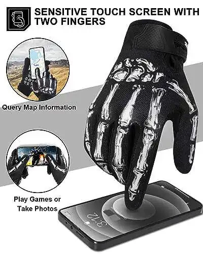 RIGWARL Dokunmatik Ekranlı Kaymaz İskelet Motosiklet Eldivenleri Erkek ve Kadınlar İçin, Joker Eldivenler Bisiklet, Dirt Bike, Dağ Bisikleti ve Binicilik İçin