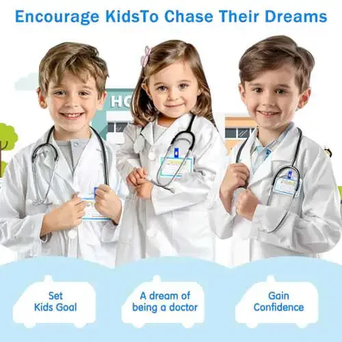 More than just a fun play experience, the RioRand Kids' Doctor Lab Coat Costume develops their imaginations, fosters social skills, and encourages an interest in healthcare professions. Role-playing games can help children develop problem-solving, communication, and collaboration skills.