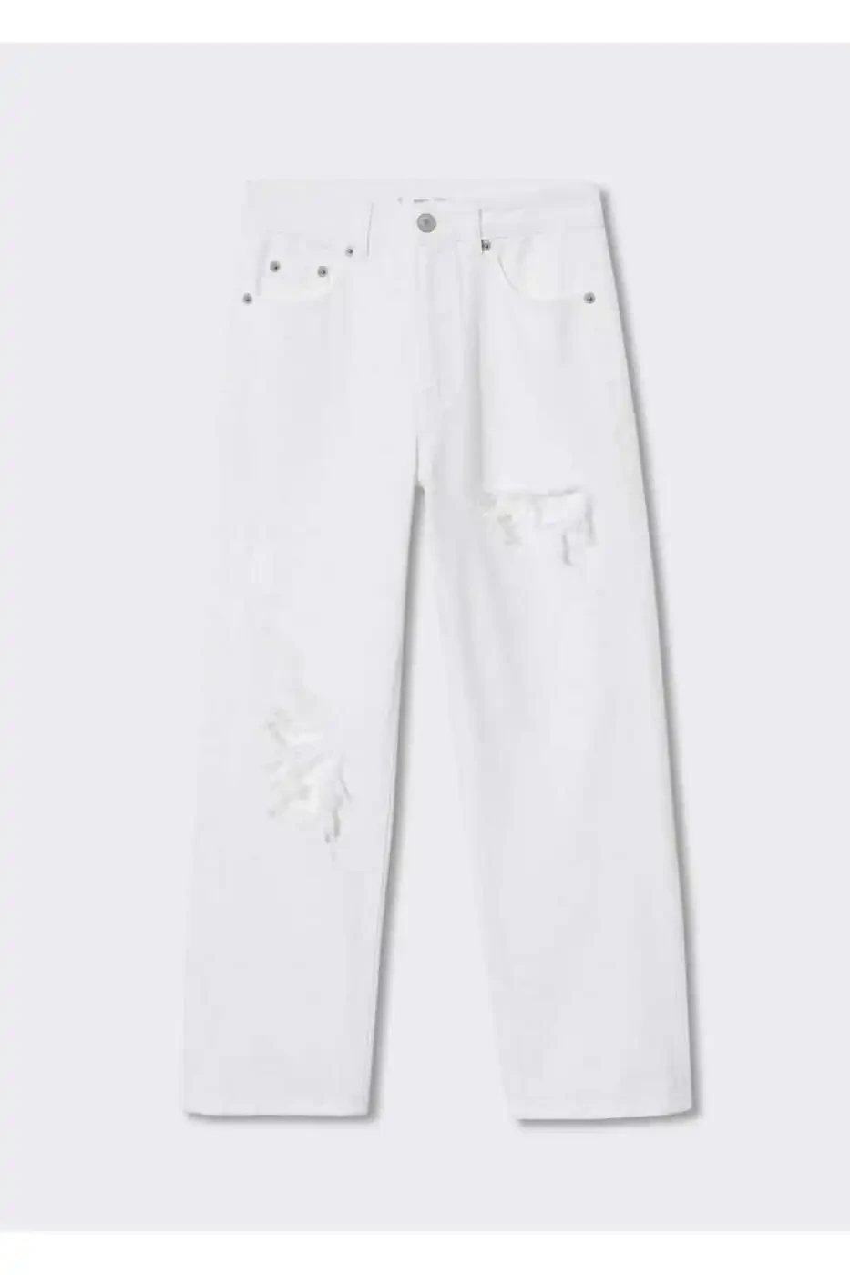Featuring decorative rips and a straight cut design, these women's jeans boast an eye-catching appearance and cater to a wide range of users across all age groups. The convenient zipper closure allows for easy dressing and removal, while the simple and elegant plain pattern effortlessly complements your everyday outfits. For long-lasting use, we recommend following the Type 1 washing instructions. The high-waisted design perfectly hugs your curves, creating a flattering silhouette. The durable woven fabric helps preserve your jeans, keeping them looking pristine for longer. Enjoy peace of mind with our free return option and the assurance of Trendyol.