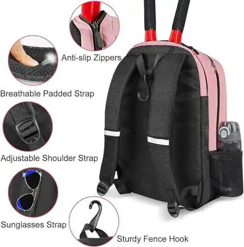 - 2 отделения для ракеток: Просторные и мягкие отделения для безопасной перевозки двух ваших теннисных ракеток.