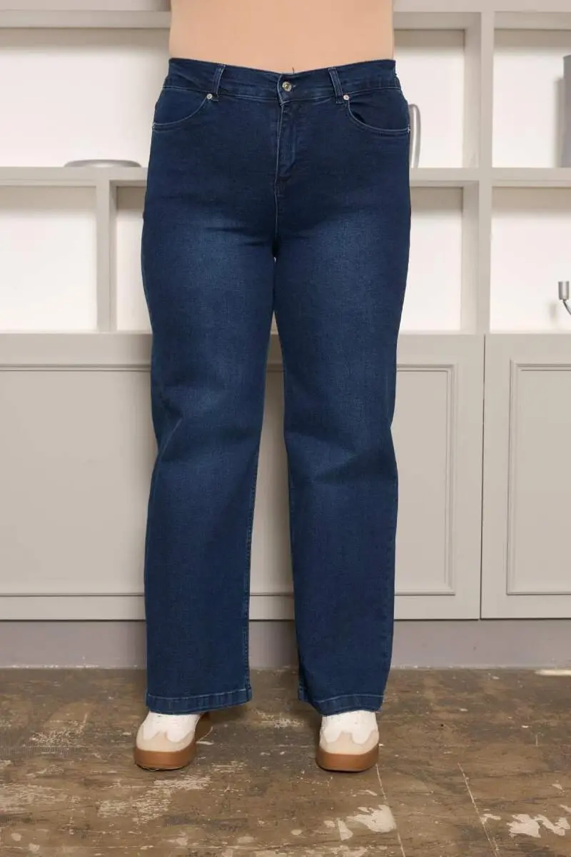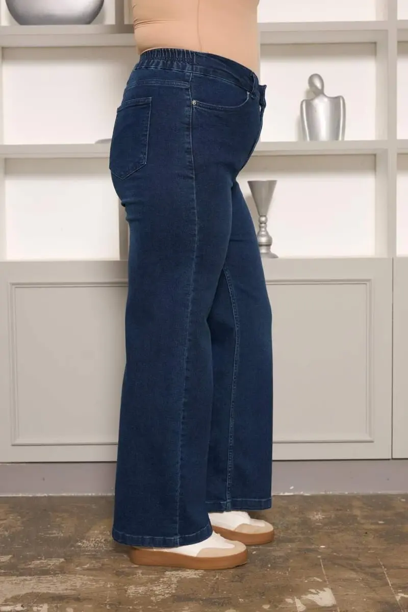 Rmg Beli Lastikli Bol Paça Büyük Beden Kim.Mavi Kot Pantolon