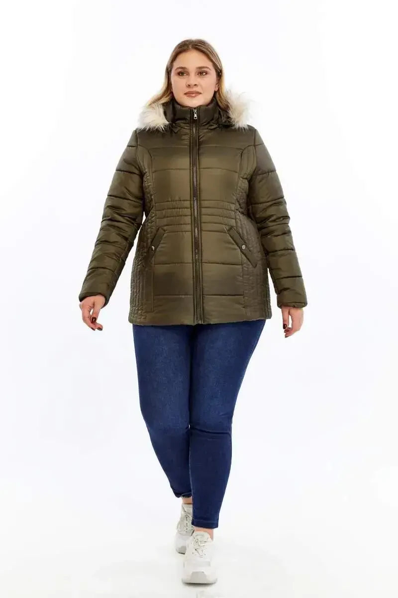 Rmg Kapşonlu Büyük Beden Haki Kapitone Mont ile kışın soğuklarına meydan okuyun! Bu şık ve fonksiyonel mont, hem sıcak tutacak hem de tarzınızı tamamlayacak mükemmel bir seçenektir. Büyük beden seçenekleri sayesinde her vücut tipine uyum sağlayan bu mont, rahatlığı ve şıklığı bir arada sunar. Haki rengi, doğayla uyumlu, zamansız ve kolay kombinlenebilir bir seçenektir. Kapitone deseni, monta modern ve dinamik bir görünüm kazandırırken, dolgusu sayesinde soğuk havalarda sizi sıcacık tutar. Kapüşonlu tasarımı, yağmur ve rüzgardan korunmanıza yardımcı olurken, şık bir detay olarak da öne çıkar. Günlük kullanım, hafta sonu gezileri veya açık hava etkinlikleri için idealdir.Bu mont, sadece görünümüyle değil, aynı zamanda pratik özellikleriyle de öne çıkar. Dayanıklı polyester kumaşı, uzun ömürlü kullanım sunar ve kolayca temizlenebilir. Montun cepleri, telefonunuzu, anahtarlarınızı veya diğer kişisel eşyalarınızı güvenle saklamanız için idealdir. Büyük beden kesimi, hareket özgürlüğünüzü kısıtlamadan rahat bir kullanım sağlar. Rmg Kapşonlu Büyük Beden Haki Kapitone Mont, kış gardırobunuzun vazgeçilmez bir parçası olacak. Hem şık görünmek hem de soğuktan korunmak isteyenler için ideal bir seçimdir. Tarzınızdan ödün vermeden konforu yaşayın!Modelin ölçüleri, montun büyük beden kesimi hakkında size fikir verecektir. Modelin boyu 1,74 cm, göğüs ölçüsü 115 cm, bel ölçüsü 88 cm ve basen ölçüsü 120 cm'dir. Modelin üzerinde 44 beden bulunmaktadır. Montun boyu 75 cm'dir ve bu, kalçaları örten, sıcak tutan ve rahat bir uzunluktur. Kış mevsimine özel olarak tasarlanmış bu mont, soğuk havalarda sizi sıcacık tutacak ve şıklığınızı tamamlayacaktır. Rmg kalitesiyle üretilmiş bu mont, uzun yıllar boyunca gardırobunuzda yerini koruyacak ve size eşlik edecektir. Soğuk havalarda stilinizi konuşturmak için Rmg Kapşonlu Büyük Beden Haki Kapitone Mont'u tercih edin.