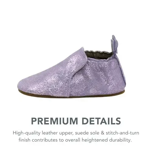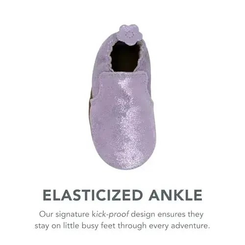 Robeez Soft Soles: Little feet need protection without restriction. Our soft sole baby shoes offer the best of both worlds. Flexible and non-constricting, they promote good balance and unrestricted growth, all while protecting little feet. They’re the perfect shoes for infants, babies, pre-walkers and toddlers. Soft, Flexible Soles: The soft, flexible suede sole provides a non-slip grip that’s ideal for little ones learning to crawl and walk. And because our soft sole shoes are so flexible, they allow little feet to move and grow freely and naturally. They’re the next best thing to bare feet. The American Podiatric Medical Association has awarded Robeez shoes the Seal of Acceptance for promoting normal foot function. Stay-On Power: Nobody wants to be constantly searching for lost shoes. That’s why our baby shoes feature elasticized ankles that keep them securely on wiggly feet. Parents love how easy they are to put on and take off, and more importantly, how well they stay on. Premium Materials: We use only high-quality leathers and materials that are tested for safety, so you can rest assured your child’s feet are encased in the very best. Our baby shoes are comfortable, durable and adorable. Many of our soft sole shoes feature a breathable leather lining that helps little feet stay dry and comfortable. Stylish Designs: From classic designs to trendy prints, Robeez offers a wide variety of soft sole shoes to complement any outfit. Choose from a range of colors, patterns and embellishments to find the perfect pair for your little one. With so many stylish options, you’re sure to find the perfect Robeez soft sole shoes to match your baby’s unique personality.