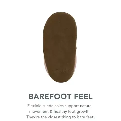 Robeez Baby Girls and Unisex Soft Soles Baby Slippers are designed to support the healthy development of little feet. These slippers, which offer both the comfort and confidence that babies need when taking their first steps, are an ideal choice for parents who care about their babies' foot health. Robeez Soft Soles, which do not squeeze the feet but rather allow them natural freedom of movement, help babies stand firmly on the ground and minimize the risk of falling. Thanks to the soft suede sole that flexes with the foot at every step, babies' foot muscles are strengthened and their balance skills are developed. These slippers, which add color to babies' world with their cute designs and fun characters, are not only functional but also a stylish accessory. Robeez Soft Soles are approved by the American Podiatric Medical Association and are a reliable choice for babies' foot health. They can be easily put on and taken off thanks to the elastic ankle part or zipper and stay securely on the feet. Thanks to the wide toe box and zero heel drop, the toes can move comfortably and the natural shape of the feet is preserved. Robeez Soft Soles accompany babies from their first steps, contributing to a healthy and happy development process. Moreover, the Heart Sparkle leather model adds a fun touch to babies' combinations with its glittery hearts embroidered on pink leather. The sparkling hearts in pink, gold and purple reflect the joy of little ones with every step. These stylish and comfortable slippers, designed with your baby's foot health in mind, are a perfect choice for both everyday use and special occasions.
