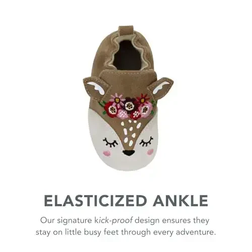 Robeez Baby Girls and Unisex Soft Soles Baby Shoes are a unique footwear option designed for the comfort and healthy development of little feet. These booties, which support babies' and toddlers' first steps, are ideal for babies aged 0-24 months. Thanks to their soft soles that give a barefoot feel, Robeez booties support your baby's feet without restricting their natural movement. Designed with your baby's foot health in mind, this product is also approved by the American Podiatric Medical Association. The soft suede sole, which flexes and bends with every step, supports healthy foot development while helping your baby find their balance. The non-slip suede sole ensures your baby walks safely. With their cute designs and characters, Robeez booties will add a fun touch to your baby's wardrobe. The elastic ankle structure or zipper detail makes them easy to put on and take off and prevents them from slipping off your baby's feet. The wide toe box allows the toes to move comfortably, while the zero drop sole provides better balance. Thanks to the naturally breathable lining, your baby's feet stay dry and cool. Robeez Baby Girls and Unisex Soft Soles Baby Shoes are the best friend to accompany your baby's first steps. The camel suede and cute floral deer design in the Josephine model, with its 3D ears and sweet face applique, is a detail that your baby will love. Thanks to its flexible structure and wide toe area, the feet can move comfortably and better balance is achieved. Robeez booties protect your baby's foot health while allowing them to move freely and explore the world. Remember, Robeez booties are not just a shoe, but also an investment in your baby's healthy development.