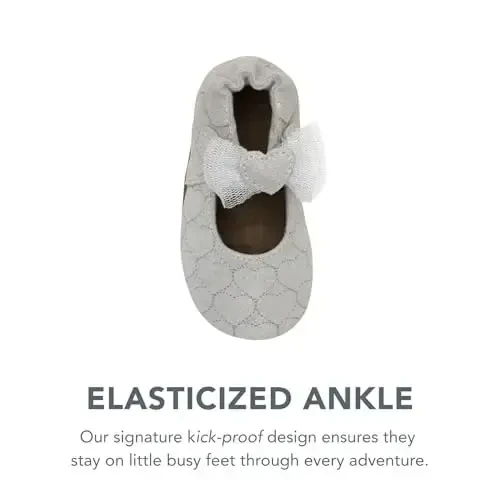 Robeez Baby Girls and Unisex Soft Soles bebek ve küçük çocuk terlikleri, minik ayakların sağlıklı gelişimini desteklemek için tasarlanmıştır. Bu sevimli ve kullanışlı terlikler, bebeklerin ve yeni yürümeye başlayan çocukların ilk adımlarını atarken onlara maksimum konfor ve güvenlik sunar. Ayakların doğal hareketlerini kısıtlamayan yumuşak tabanları sayesinde, çıplak ayakla yürüyormuş hissi verir ve minik ayakların sağlıklı bir şekilde büyümesine yardımcı olur. Robeez Soft Soles terlikler, her adımda esneyip bükülerek, ayakların tüm hareket aralığını destekler. Süet tabanları, bebeklerin yürümeye başladığı ilk anlarda yer tutuşunu kolaylaştırır ve ayakların rahatça büyümesi için yeterli alan sağlar. Sevimli tasarımları ve karakterleriyle dikkat çeken bu terlikler, hem kız hem de erkek bebekler için idealdir. Aynı zamanda Amerikan Podiatri Tıp Birliği tarafından da onaylanmıştır, bu da ürünün kalitesini ve güvenilirliğini kanıtlar. Robeez terlikler, kolayca giyilip çıkarılabilir ve kaymaz tabanları sayesinde çocukların güvenliğini artırır. Esnek bilek kısmı veya fermuarı sayesinde ayakta kolayca durur ve kaymaz süet taban, çocukların kaymasını önler. Doğal olarak nefes alabilen astarı, ayakların kuru ve serin kalmasına yardımcı olur. Geniş burun kısmı, hareket özgürlüğü sağlar ve daha iyi denge için sıfır düşüşlü tabanı ile kısıtlayıcı değildir. Robeez Baby Girls Desiree modeli, şık tasarımıyla öne çıkar. Lüks simli gümüş rengi, süet üst yüzeyi ve uyumlu file kurdelesiyle göz alıcı bir görünüm sunar. Kalp aplikesi ve tüm yüzeyindeki kapitone kalpler, bu terliği daha da sevimli hale getirir. Bebeklerin ve küçük çocukların hassas ciltleri düşünülerek üretilen Robeez terlikler, onların konforunu ve güvenliğini ön planda tutar. Bebeğinizin ilk adımlarını Robeez Soft Soles terliklerle güvenle atmasını sağlayın. Bu terlikler, sadece sevimli bir aksesuar değil, aynı zamanda ayak sağlığını destekleyen önemli bir araçtır.