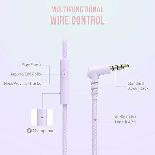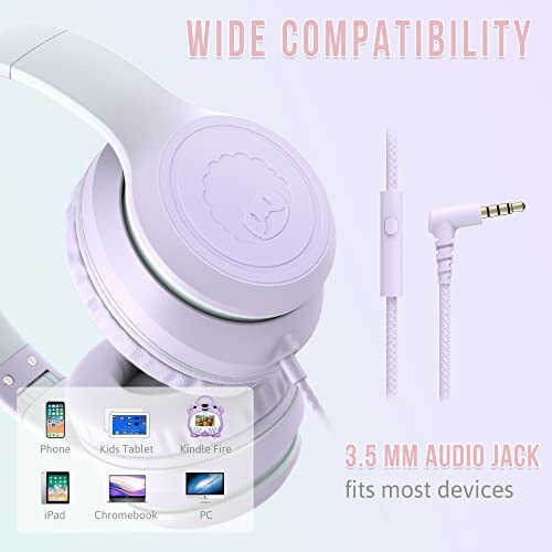 Rockpapa L22, bolalar uchun quloqchinlar, simli quloqchin, bolalar, qizlar, o'g'il bolalar, mikrofonli quloqchin, yig'iladigan quloqchin, maktab quloqchinlari, Chromebook, kompyuter, noutbuk, telefon, samolyot, binafsha quloqchin