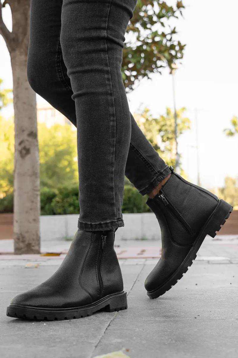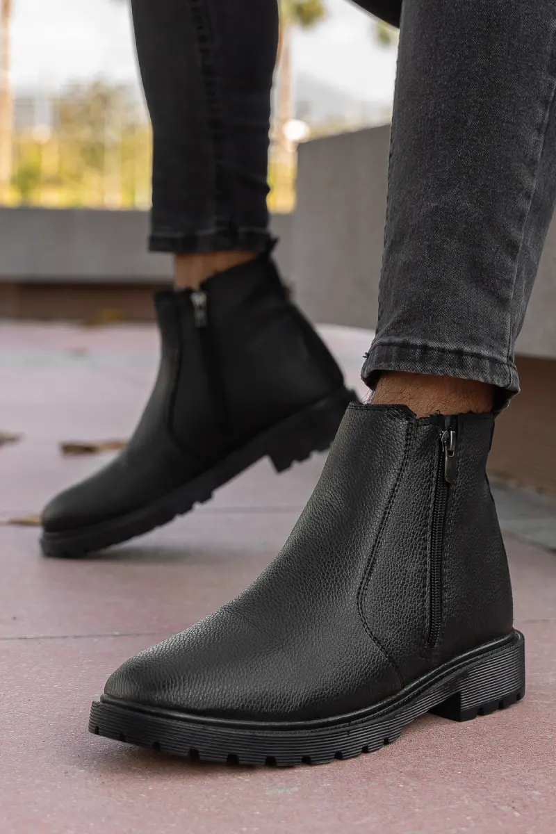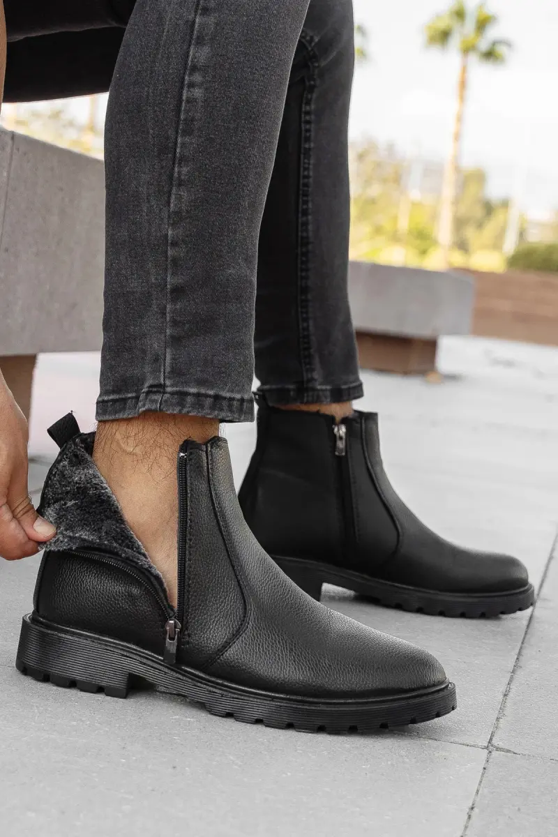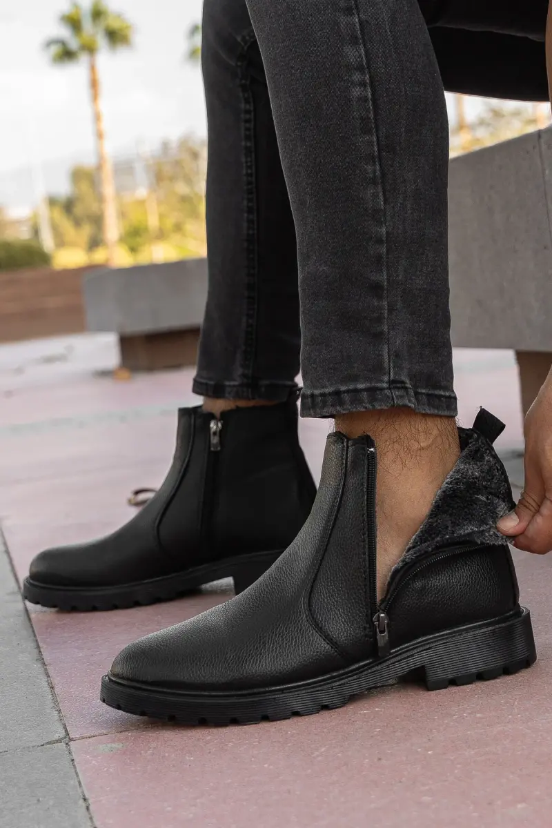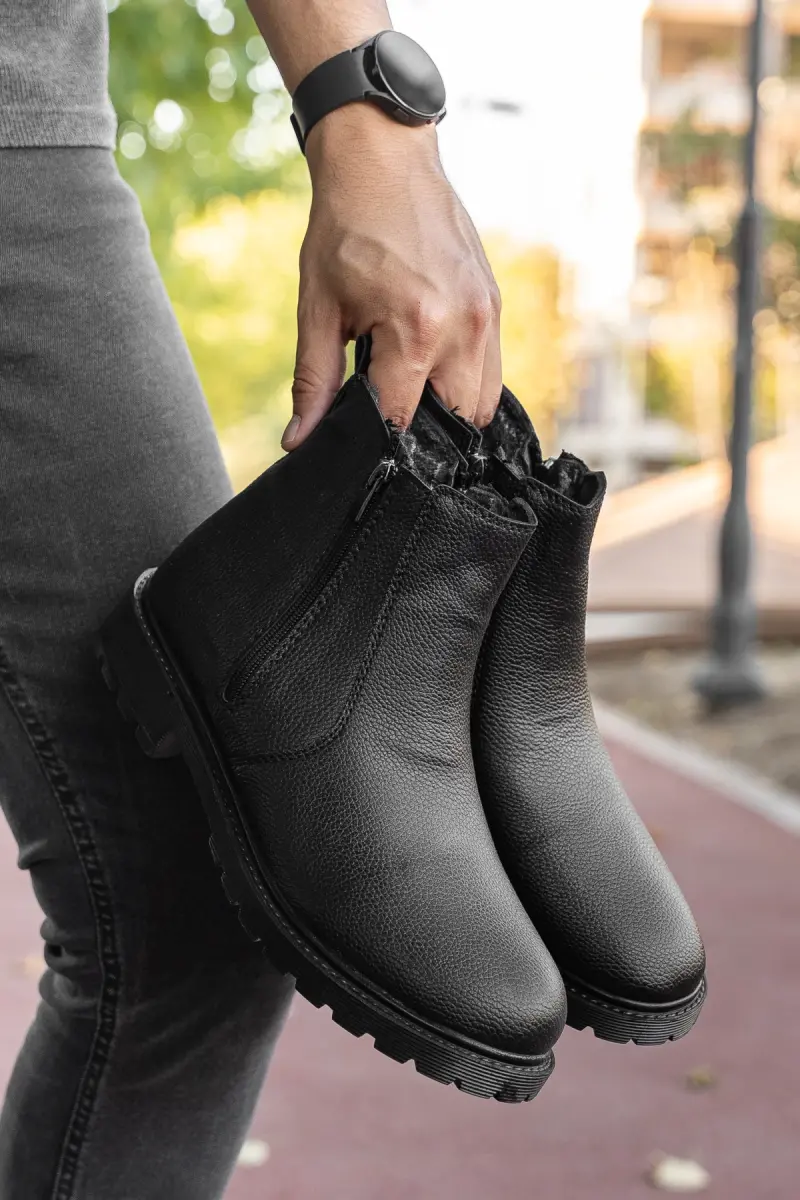 RODRİGUEZ Garantili Fermuarlı Kürklü Soğuk Geçirmez Erkek Bot-Siyah PARLAK