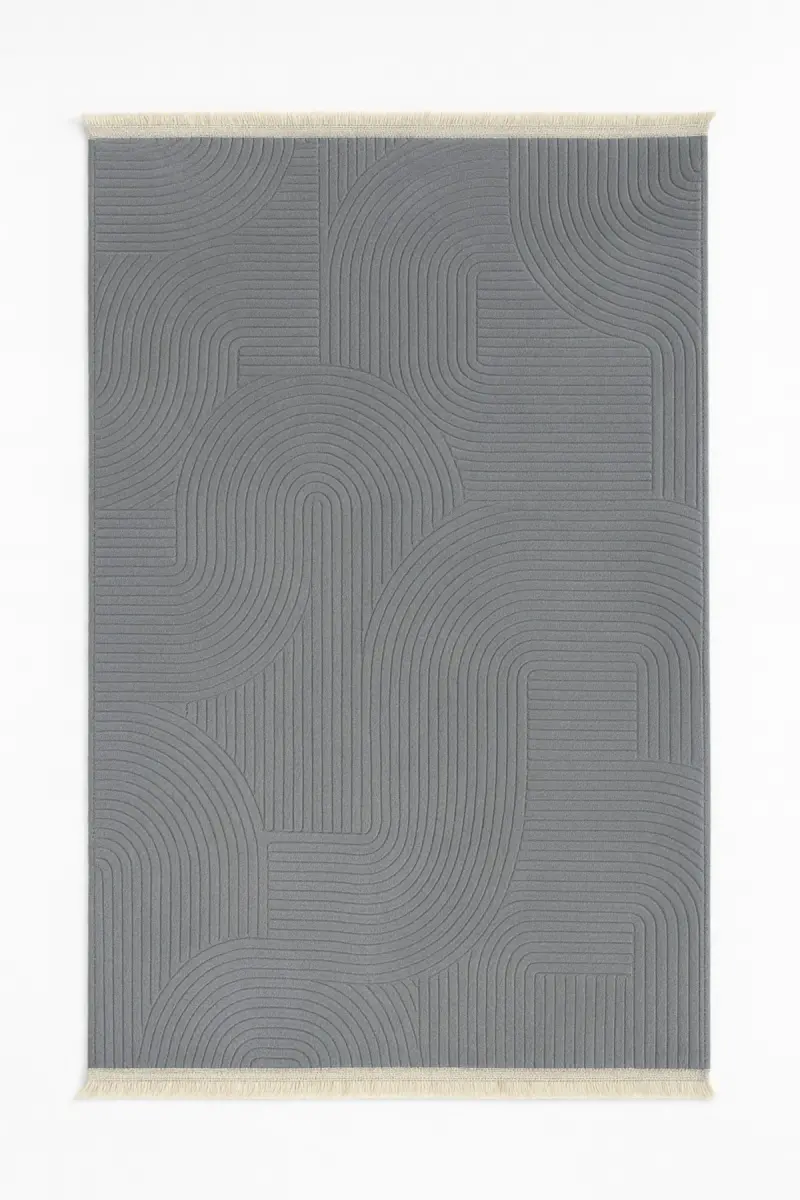 Rölyef Joy Düz Saçakl Kaymaz Taban Kesme Antre Halı Yolluk Gri-Gri