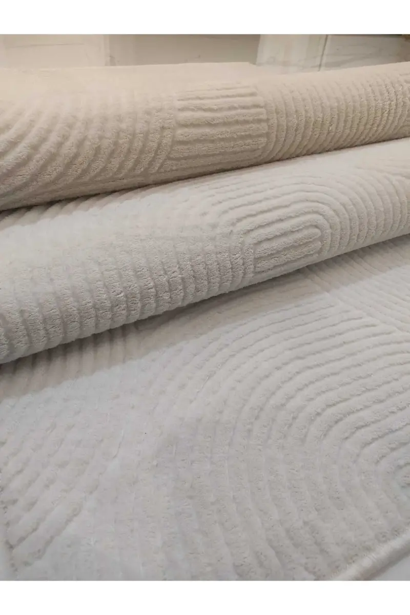 Rölyef Joy Krem Kaymaz Taban Halı Yolluk Kilim Büyük Ebatlar-AçıkBej