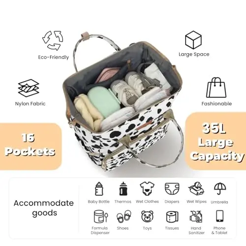 ROSEGIN Diaper Bag Backpack is a stylish and functional baby care bag designed to make parents' lives easier. With its large interior volume, cleverly designed compartments, and durable materials, this bag allows you to carry all your baby's needs with you. Thanks to its large 35-liter capacity and 16 separate compartments, you can organize your belongings neatly and easily access them. These features provide great convenience, especially when you are on the move. Thanks to its waterproof 900D Oxford fabric and durable nylon lining, the bag is long-lasting and suitable for daily use. Thanks to its lightweight construction (only 1.6 lbs), you can carry it comfortably all day long. In addition, the reinforced quilting on the front panel provides extra structure and impact protection for bottles. Accessories such as a diaper changing pad, pacifier case, and stroller straps are also included. ROSEGIN Diaper Bag Backpack is not just a baby care bag, but also a stylish and useful travel companion. Whether for daily use or travel, this bag will perfectly accompany you and your baby. Thanks to the unique back panel design, you can easily access even the items at the bottom of your bag. Now you don't have to empty everything when you're in a hurry. ROSEGIN is a perfect gift option for new parents, and you can make your loved ones happy on special occasions such as Mother's Day, birthdays, or Christmas. Thanks to its waterproof feature, it protects your belongings against unexpected situations. It is suitable for both baby boys and girls and is also ideal as a baby shower gift.