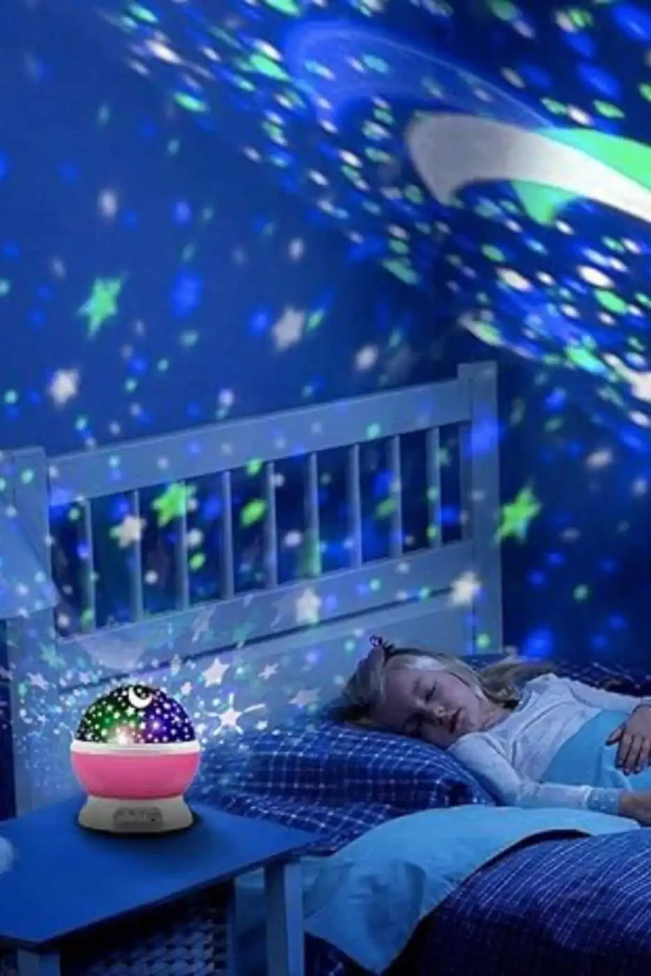 Decorate your child's room with a magical starry sky view! Order the Moon and Stars Rotating Projection Night Light now!