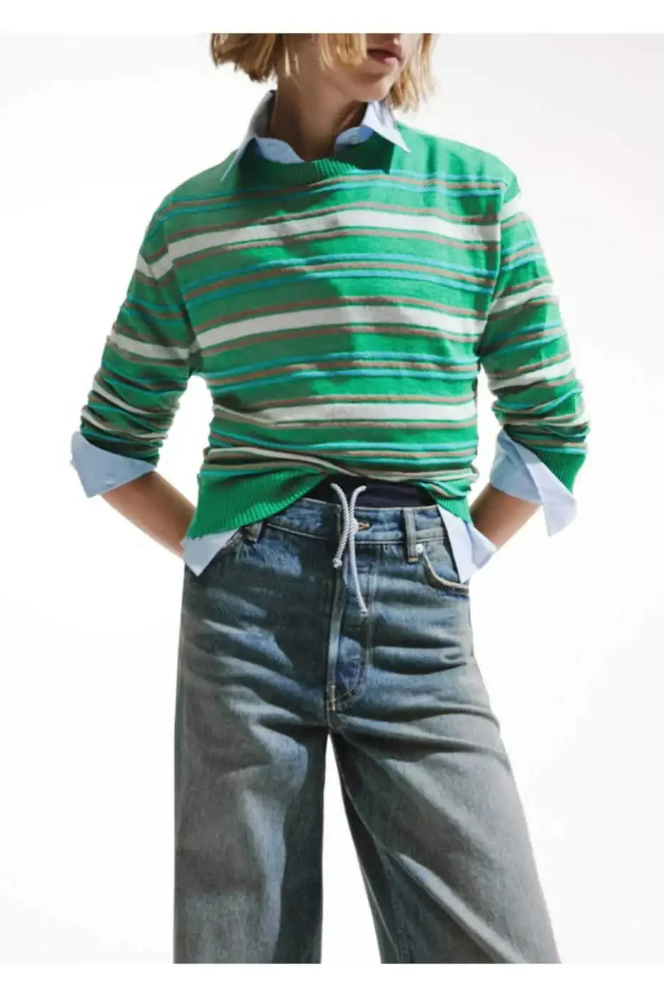 With its classic stripes and relaxed silhouette, our crew neck striped sweater is a timeless piece that combines comfort and style. Designed with long sleeves for cozy wear during transitional seasons and cooler temperatures, it's a versatile addition to your everyday wardrobe. The regular fit ensures a comfortable and flattering fit for various body types. The soft and stretchy knit fabric offers all-day comfort, while the Type 1 washing instructions make it easy to care for, maintaining its quality wash after wash. Catering to a wide range of preferences, this sweater is a versatile choice for everyone, featuring a simple yet stylish design that pairs effortlessly with your daily outfits. Its regular fit provides a relaxed and comfortable fit that conforms to your body without being restrictive, allowing for freedom of movement.