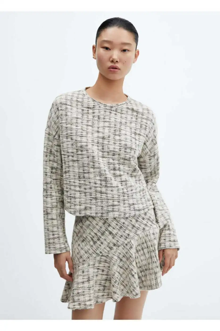 With its patterned texture, the sweater creates an eye-catching style, adding vibrancy to your everyday outfits. The regular fit and size options ensure a comfortable fit, adapting to your body shape. Easy to care for, the sweater can be cleaned effortlessly following the Type 1 washing instructions. The Round Neck Tweed Sweater combines a chic touch to your modern style while prioritizing your comfort.