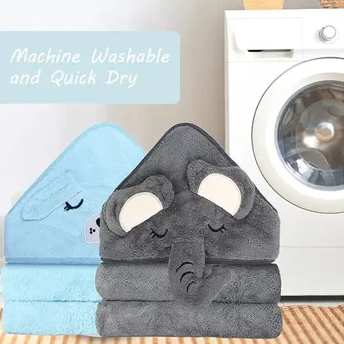 ROXANEPIG baby towels are made of high-quality materials that do not harm your baby's sensitive skin. It is easily washable and dryable. Thanks to its durable structure, it offers long-term use. Contains two towels (Elephant and Dog design). It is a product that prioritizes your baby's comfort and health after bathing.