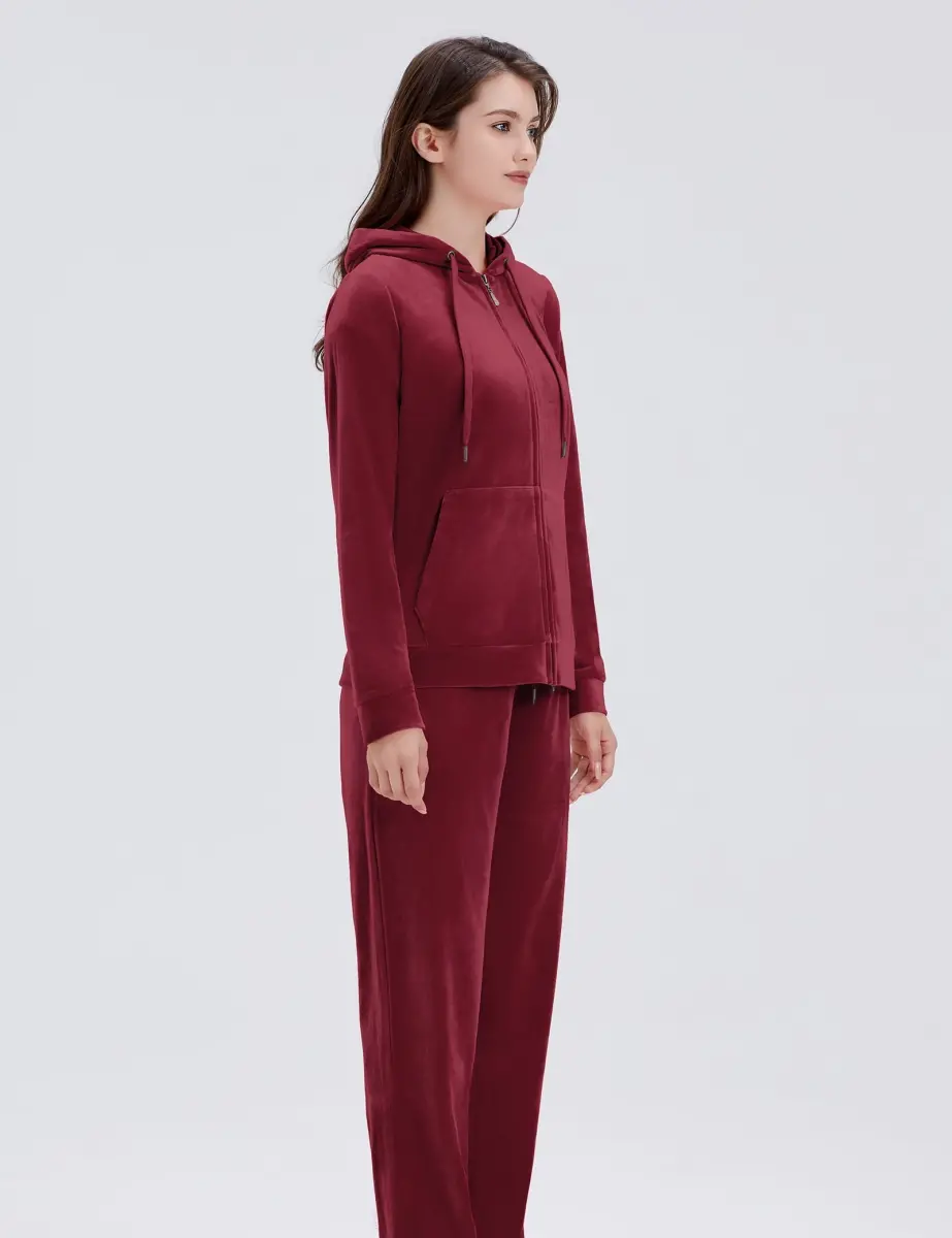 ROYAL MATRIX Women's Velour Sweatsuits - 2 Pieces Velvet Tracksuits Long Sleeve Full Zip Outfits Hoodie & Sweatpants Sets (Wine, M)-