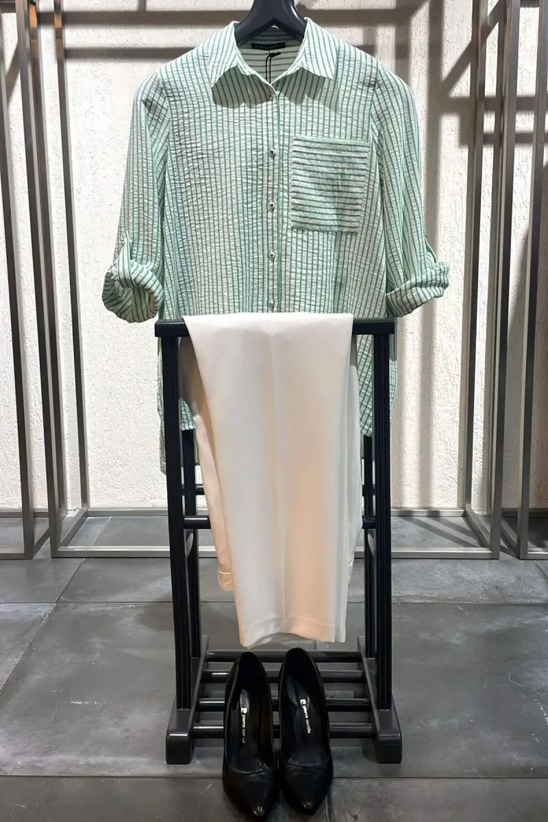 Рубашка Angelino Plus Size в зеленую полоску с одним карманом - это идеальный выбор, сочетающий в себе элегантность и комфорт. Зеленый полосатый узор, отражающий живую энергию весны и лета, создает современный и привлекательный вид. Благодаря свободному крою вы будете чувствовать себя комфортно в течение всего дня. Складные рукава обеспечивают практичность использования, позволяя легко регулировать их в зависимости от погодных условий и личных предпочтений. Длина ниже бедер отлично сочетается как с брюками, так и с шортами. Изготовленная из высококачественной смесовой ткани, состоящей из 85% полиэстера и 15% хлопка, эта рубашка имеет мягкую и дышащую структуру. Она помогает вам оставаться прохладным и свежим в жаркую погоду, а также является прочной и долговечной. Узорчатый дизайн идеально подходит для создания простого и стильного образа. Вы можете создавать различные стили, комбинируя ее с тканевыми брюками, льняными брюками или шортами. Это отличный выбор для повседневного использования, работы или особых случаев. Рубашка Angelino Plus Size в зеленую полоску с одним карманом разработана специально для мужчин больших размеров, которые ищут элегантность и комфорт. Современный полосатый узор, свободный крой и складные рукава обеспечивают стильный и практичный опыт ношения. В этой рубашке вы будете чувствовать себя уверенно и комфортно, отражая свой стиль в любой обстановке. Эта рубашка, которую можно с комфортом носить в любое время года, станет незаменимой частью вашего гардероба.