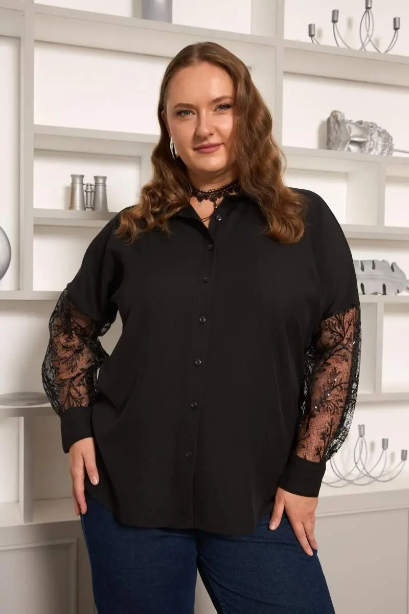 Познакомьтесь с блузкой больших размеров с кружевной отделкой на рукавах, сочетающей в себе элегантность и комфорт! Эта блузка, сочетающая благородство черного цвета с кружевными деталями, станет незаменимой вещью в вашем гардеробе. Эту блузку можно легко носить как для особых случаев, так и для повседневного использования, она позволяет женщинам больших размеров чувствовать себя хорошо, не жертвуя при этом элегантностью.Блузка, изготовленная из 100% полиэстеровой ткани, выделяется своей прочностью и долговечностью. Структура тканой ткани обеспечивает безупречную посадку блузки, а благодаря полиэстеру ее легко гладить и она устойчива к складкам. Это гарантирует, что вы будете выглядеть стильно и ухоженно в течение всего дня.Длина блузки 44-го размера на модели составляет 75 см. Эта длина идеально подходит для удобного сочетания как с брюками, так и с юбками. Крой блузки разработан специально для женщин больших размеров. Благодаря удобному крою, который облегает фигуру, но не стесняет движений, она обеспечивает комфорт в течение всего дня. Кружевные детали на рукавах придают блузке элегантный и женственный вид. Кружевные детали позволяют блузке выделиться из общей массы и стать особенной вещью.Эту блузку можно носить осенью и зимой, надевая ее под трикотаж, куртки и пальто, создавая многослойный стиль. Вы также можете создать стильный образ, надев ее отдельно. Эту блузку можно легко носить в офисе, на ужинах или на особых мероприятиях, она может адаптироваться к различным стилям с разными комбинациями. Благодаря черному цвету ее легко сочетать с любой одеждой любого цвета и модели.Блузка больших размеров с кружевной отделкой на рукавах не только позволяет выглядеть стильно, но и чувствовать себя уверенно и комфортно. Это предмет одежды, который повысит уверенность в себе женщин больших размеров и дополнит их стиль. Эта блузка, которая обязательно должна быть в вашем гардеробе, всегда будет придавать вам элегантный и изящный вид.