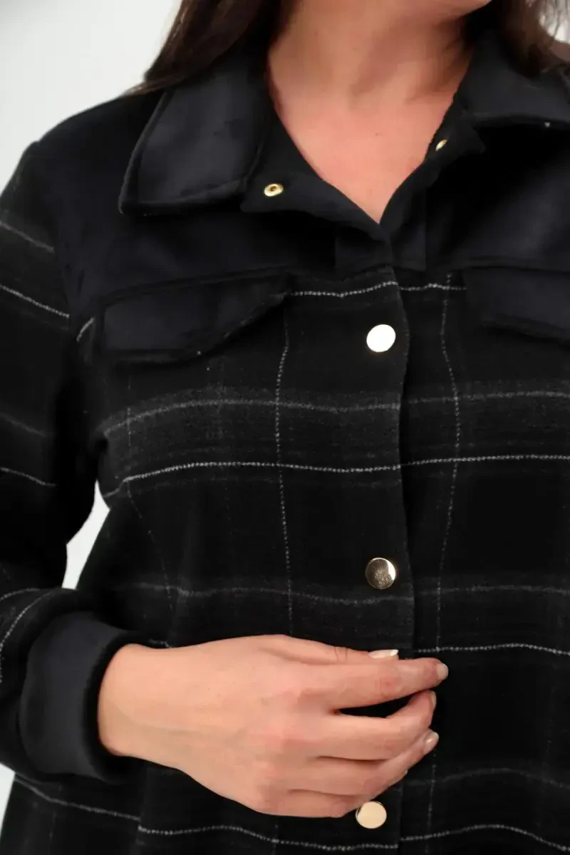 Büyük Beden Ekose Desen Oduncu Siyah Gömlek ile tarzınıza özgün bir dokunuş katın! Bu çok yönlü ve şık gömlek, hem rahatlığı hem de modern görünümü bir araya getiriyor. Hafif ve yumuşak dokusu sayesinde gün boyu konforlu bir kullanım sunarken, rahat form düz kesimi sayesinde vücudunuza mükemmel bir şekilde oturur. Soğuk havalarda içinizi ısıtan oduncu ekose deseni, gardırobunuzun vazgeçilmez parçası olmaya aday. İster ceket olarak ister gömlek olarak kullanın, bu ürün farklı kombinler yaratmanıza olanak tanır.Ön ve kol manşetlerindeki metal düğme detayları, gömleğe şık ve modern bir hava katarken, kapüşon detayı ise hem stilinizi tamamlar hem de soğuktan korunmanıza yardımcı olur. Eteklerinizle, pantolonlarınızla ya da taytlarınızla kolayca kombinleyebileceğiniz bu gömlek, her ortama uyum sağlar. Günlük kullanım için ideal olduğu kadar, özel anlarda da tarzınızı yansıtmanızı sağlar.Büyük Beden Ekose Desen Oduncu Siyah Gömlek, sadece şık görünmekle kalmaz, aynı zamanda kaliteli malzemesi sayesinde uzun ömürlü bir kullanım sunar. %25 Akrilik, %50 Pamuk ve %25 Polyester karışımı, gömleğin hem dayanıklı hem de rahat olmasını sağlar. Cildinize nefes aldıran pamuklu dokusu, gün boyu terlemeyi önlerken, akrilik ve polyester karışımı ise gömleğin şeklini korumasına yardımcı olur.ModaZon’un özel tasarımı olan bu gömlek, büyük beden kadınların şıklığından ödün vermeden rahat etmelerini sağlamak için özenle tasarlanmıştır. Mankenin üzerindeki 44 beden, gömleğin farklı bedenlere nasıl uyum sağladığını göstermektedir. Omuz, göğüs, basen ve bel ölçüleri ile mankenin boyu, size doğru bedeni seçme konusunda yardımcı olacaktır.Büyük Beden Ekose Desen Oduncu Siyah Gömlek, gardırobunuzun en sevilen parçalarından biri olmaya hazır. Hem şık hem de rahat olmak isteyen tüm kadınlar için ideal bir seçimdir. Şimdi sipariş verin ve tarzınızı yansıtmaya başlayın!