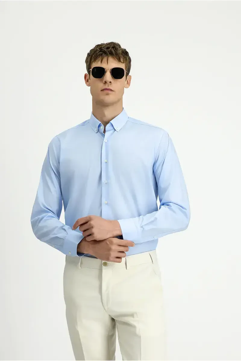 100% Хлопок, Длинный Рукав, Regular Fit, Воротник на Пуговицах, Non Iron, Не Требует Глажки, Без Рисунка