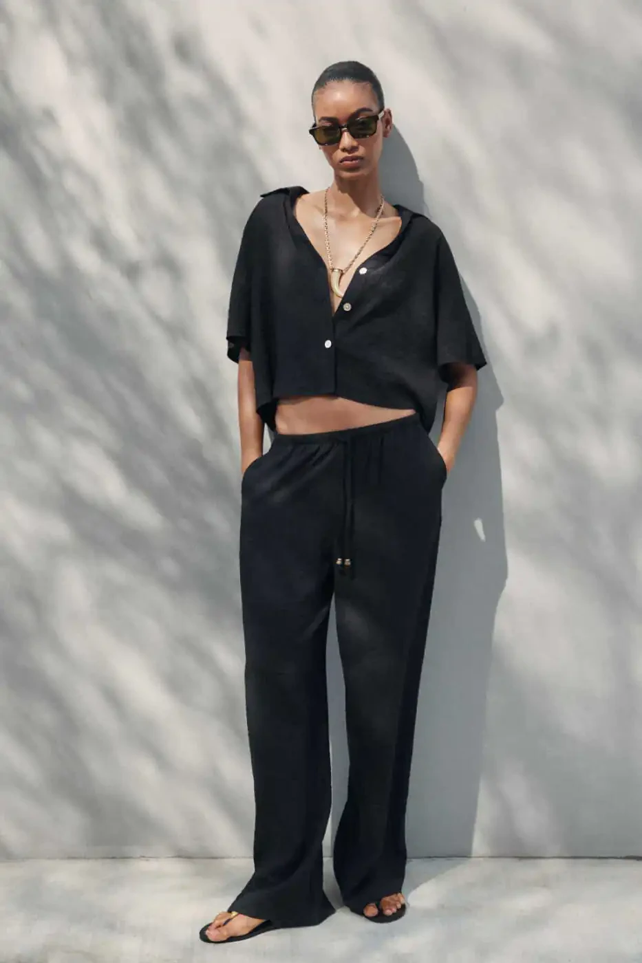 Gardırobunuzun vazgeçilmezi olacak, şıklığı ve rahatlığı bir araya getiren Kısa Kollu Gömlek - Siyah ile tanışın! Bu özel tasarım gömlek, modern detayları ve zarif kesimiyle her ortamda dikkat çekmenizi sağlayacak. Yüksek kaliteli kumaşı sayesinde gün boyu konforlu bir kullanım sunarken, siyahın asil duruşu ile stilinizi tamamlayacak. Yaka detayları, gömleğe farklı bir hava katarken, V yaka kesimi feminen bir dokunuş sunar. Kısa kollu tasarımı, özellikle sıcak havalarda serin ve rahat hissetmenize yardımcı olurken, şıklığınızdan ödün vermemenizi sağlar. Sırt kısmında yer alan petek detayı, gömleğe özgün bir görünüm kazandırır ve sıradanlıktan uzaklaşmanızı sağlar. Bu detay, gömleğin tasarımını zenginleştirirken, giyen kişiye sofistike bir hava katar. Ön kısımda bulunan düğme ilikleme özelliği, gömleği kolayca giyip çıkarmanızı sağlarken, aynı zamanda farklı kombinler yapmanıza olanak tanır. Düğmeleri açık bırakarak daha rahat bir görünüm elde edebilir, kapalı kullanarak ise daha resmi bir stil yaratabilirsiniz. Kısa Kollu Gömlek - Siyah, iş hayatından özel davetlere, günlük kullanımdan tatil kombinlerine kadar her türlü ortama uyum sağlayabilecek çok yönlü bir parçadır. Jean pantolonlarla kombinleyerek spor şık bir tarz yaratabilir, eteklerle kombinleyerek daha feminen bir görünüm elde edebilirsiniz. Ayrıca, şortlarla kombinleyerek yazın enerjisini yansıtan rahat bir stil oluşturabilirsiniz. Bu gömlek, sadece şık görünmekle kalmaz, aynı zamanda kendinizi iyi hissetmenizi de sağlar. Yüksek kaliteli kumaşı, cildinize nazikçe dokunur ve gün boyu rahatlık sunar. Terletmeyen yapısı sayesinde, sıcak havalarda bile ferah kalabilirsiniz. Kısa Kollu Gömlek - Siyah, gardırobunuzdaki diğer parçalarla kolayca kombinlenebilir ve farklı stiller yaratmanıza olanak tanır. Aksesuarlarla zenginleştirerek kendi tarzınızı yansıtabilirsiniz. Örneğin, şık bir kolye ile gömleğin yaka detayını vurgulayabilir, zarif bir bileklik ile kombininizi tamamlayabilirsiniz. Ayrıca, farklı renklerdeki çantalar ve ayakkabılarla da gömleğinizi kolayca uyumlu hale getirebilirsiniz. Bu gömlek, her kadının gardırobunda olması gereken temel parçalardan biridir. Zamansız tasarımı ve çok yönlü kullanım özelliği sayesinde, uzun yıllar boyunca keyifle giyebilirsiniz. Şıklığı, rahatlığı ve kaliteyi bir arada sunan Kısa Kollu Gömlek - Siyah ile stilinizi bir üst seviyeye taşıyın!