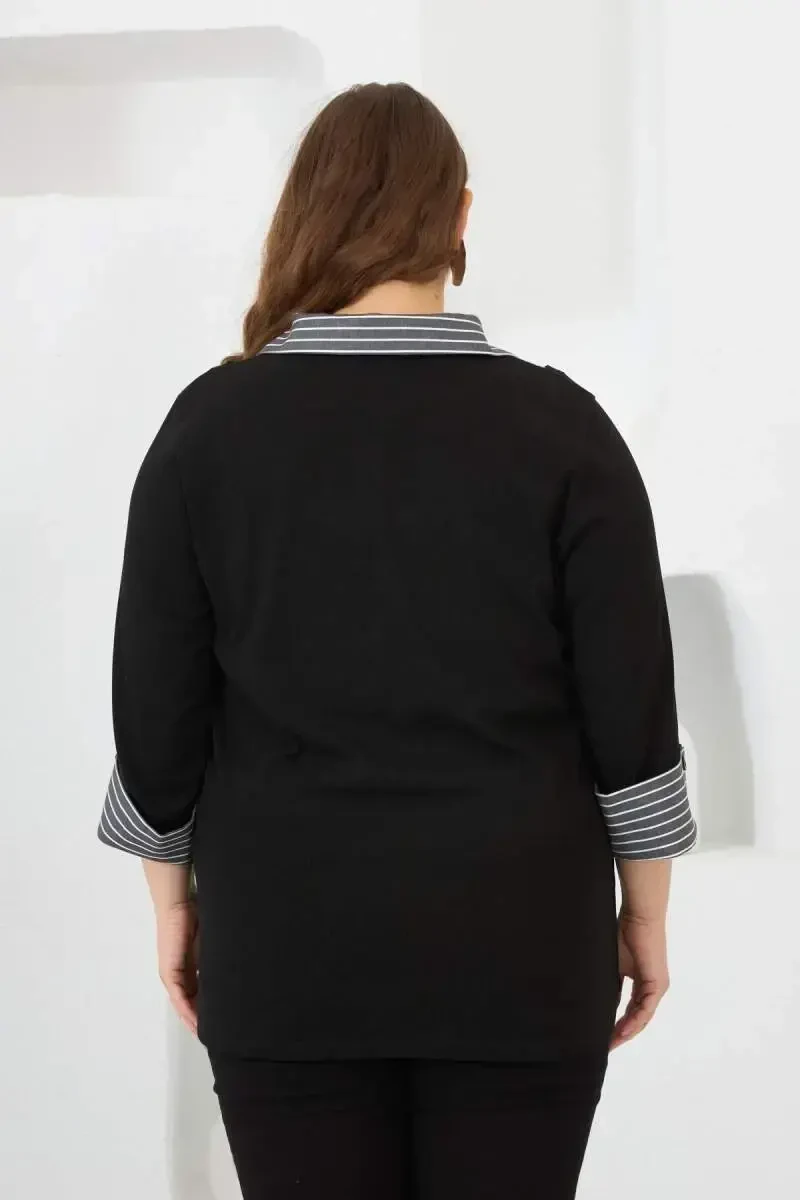 Оцените элегантность и комфорт с блузкой большого размера с рубашечным декором в черном цвете! Эта блузка специального дизайна предлагает современный и удобный вариант, который вы ищете в одежде больших размеров. Изящные детали блузки с рубашечным декором добавляют классический штрих, а благородство черного цвета легко сочетается с любым вашим нарядом. Будь то для повседневного использования или для особого случая, с этой блузкой вы всегда будете выглядеть стильно. Благодаря высококачественной тканой ткани блузка хорошо сидит на вас и обеспечивает комфорт в течение всего дня. Смесь 95% полиэстера и 5% эластана придает ткани эластичность, а также повышает ее прочность. Таким образом, ваша блузка надолго останется как новая. Дышащая структура тканой ткани предотвращает потоотделение и помогает вашей коже оставаться свежей в течение всего дня. Посадка и крой модели разработаны специально для больших размеров. Длина блузки 75 см позволяет легко сочетать ее как с брюками, так и с юбками. Эта блузка, которая станет незаменимой вещью в осенние и зимние месяцы, станет одним из самых любимых предметов вашего гардероба. Детали с рубашечным декором придают блузке изысканный вид, а неподвластная времени элегантность черного цвета заставит вас выделиться в любой обстановке. Вы можете надеть блузку на особое мероприятие, сочетая ее с элегантными брюками и туфлями на каблуках, или дополнить ее джинсами и кроссовками для повседневного образа. Найти правильную вещь в одежде больших размеров сложно, но эта блузка устраняет эту сложность, предлагая как элегантность, так и комфорт. Чтобы чувствовать себя хорошо и отразить свой стиль, вам обязательно стоит примерить черную блузку большого размера с рубашечным декором. Эта блузка, которая станет незаменимой вещью в вашем гардеробе, всегда будет вашим спасением. Наслаждайтесь тем, что вы одновременно элегантны и удобны!