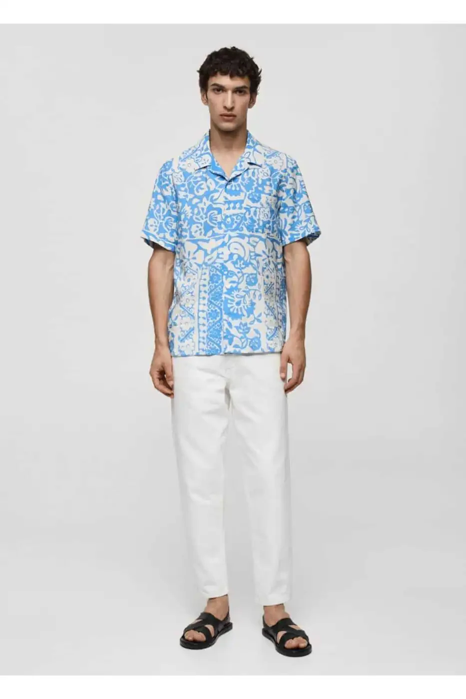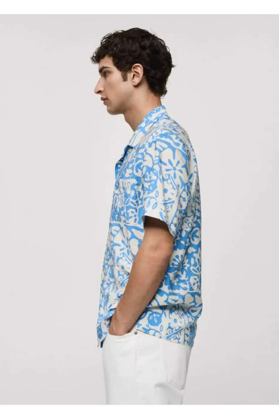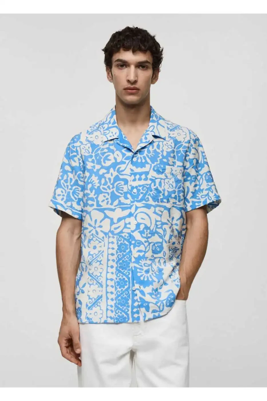 узорчатая рубашка, свободная рубашка, рубашка прямого кроя, рубашка с воротником для боулинга, рубашка с короткими рукавами