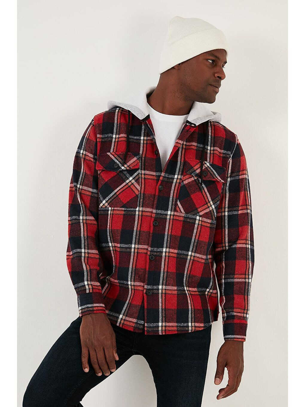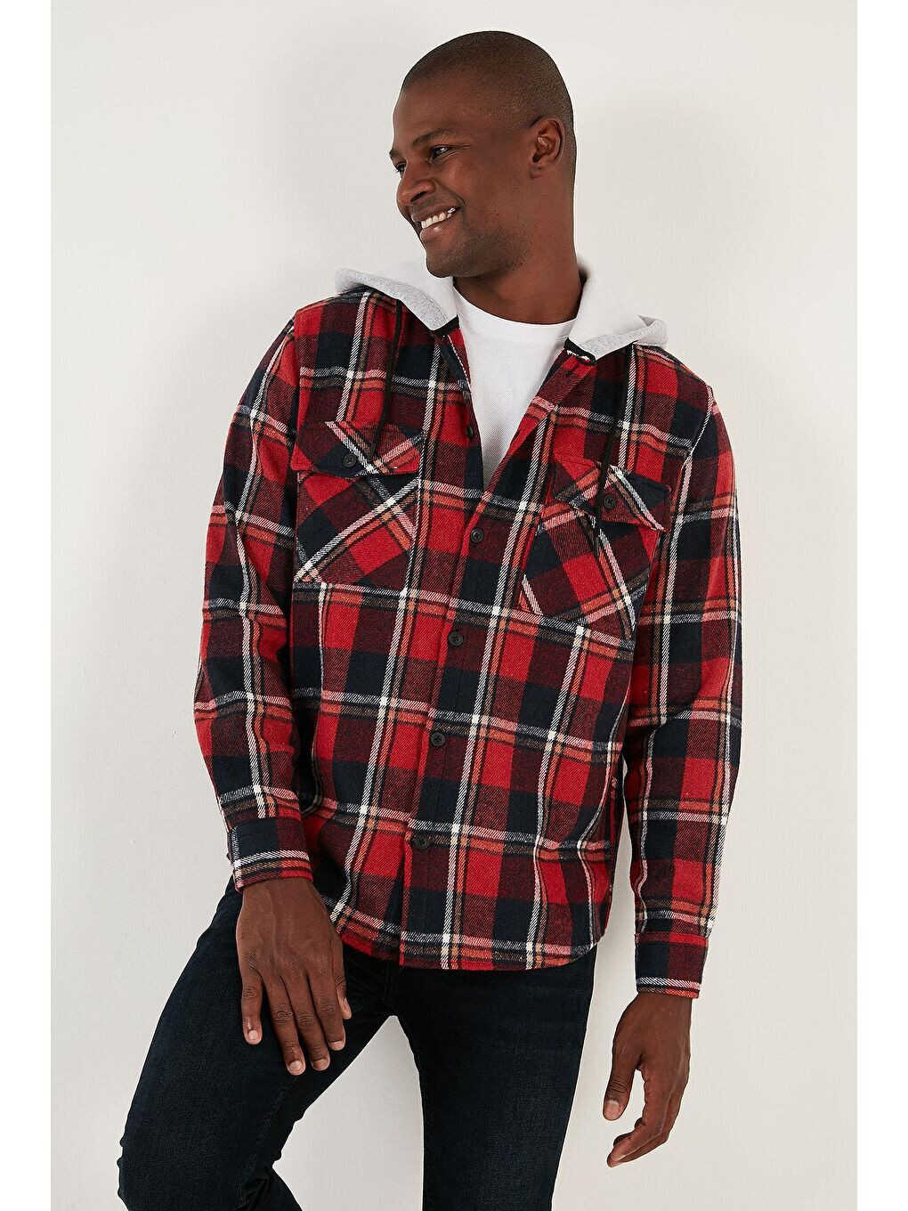 Особенности рубашки в клетку с капюшоном и двумя карманами: