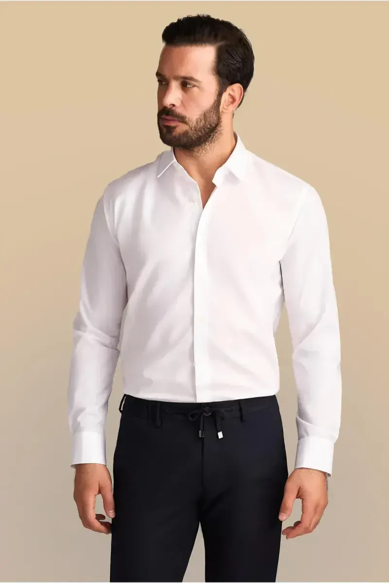 Рубашка с длинным рукавом Slim Fit из хлопка | Не требует глажки и можно стирать в машине