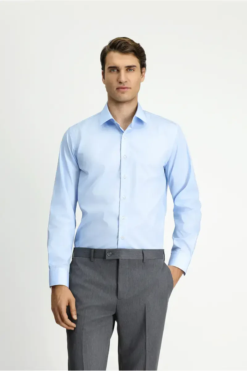Gardırobunuzun vazgeçilmezi olacak Uzun Kol Slim Fit Dar Kesim Non Iron Ütü Gerektirmeyen Pamuklu Gömleğimiz, şıklığı ve rahatlığı bir araya getiriyor. Uçuk mavi rengiyle her ortama uyum sağlayan bu gömlek, %100 pamuk dokusu sayesinde gün boyu konfor sunar. Slim fit kesimi vücudunuza tam otururken, dar kesim modern bir görünüm yaratır. Düz ve baskısız tasarımı, farklı kombinler oluşturmanıza olanak tanırken, düğmeli yaka detayı klasik bir dokunuş katar. Yoğun temponuzda size zaman kazandıran non-iron özelliği sayesinde ütü derdine son verin. İster günlük kullanımda ister özel günlerde tercih edebileceğiniz bu gömlek, stilinizi tamamlayacak ideal bir seçimdir. Ütü gerektirmeyen yapısıyla pratiklik sunarken, pamuklu kumaşı sayesinde gün boyu nefes alabilirsiniz. Her erkeğin gardırobunda bulunması gereken bu özel parça, hem şıklığı hem de rahatlığı bir arada sunuyor. Uzun kollu tasarımı, farklı mevsimlerde kullanım imkanı sağlarken, uçuk mavi rengi her zaman trend ve göz alıcı kalmanıza yardımcı olur. Günlük veya casual kullanımlarınızda şıklığınızdan ödün vermeden rahatlığınızı ön planda tutan bu gömlek, modern erkeğin vazgeçilmezi olmaya aday. Kaliteli pamuklu kumaşı ve özenli işçiliği ile uzun ömürlü kullanım sunar. Tarzınızı yansıtan ve sizi her ortamda öne çıkaran bu gömlek ile kendinizi özel hissedin. Şıklığınızı ve konforunuzu bir araya getiren bu gömleği hemen keşfedin ve gardırobunuzun en sevilen parçası yapın. Gömleğimiz, modern erkeğin ihtiyaçlarına cevap veren, stil sahibi ve pratik bir seçenektir.