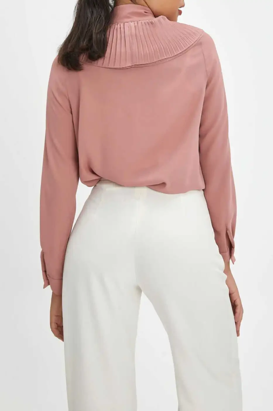 Collar Ruffle and Flower Brooch Buttoned Powder Shirt | Chic and Modern