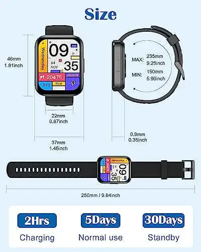 IP68 suv o'tkazmaydigan reytingi bilan siz soatingiz yomg'irda yoki mashq qilganingizda xavfsiz ekanligiga amin bo'lishingiz mumkin. Uzoq muddatli batareya muddati bitta zaryaddan bir necha kungacha foydalanishni ta'minlaydi.
