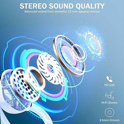 Беспроводные наушники Rulefiss переосмысливают ваш музыкальный опыт, предлагая превосходное качество звука, комфортную посадку и длительный срок службы батареи. Усовершенствованная технология Bluetooth 5.3 обеспечивает сверхнизкую задержку и стабильное подключение. 14,2-миллиметровые динамики обеспечивают мощные басы, четкие высокие частоты и богатые средние частоты, позволяя вам наслаждаться всеми типами музыки в деталях. Благодаря конструкции с дужкой для уха они надежно сидят в ушах, сводя к минимуму риск падения даже во время занятий спортом.