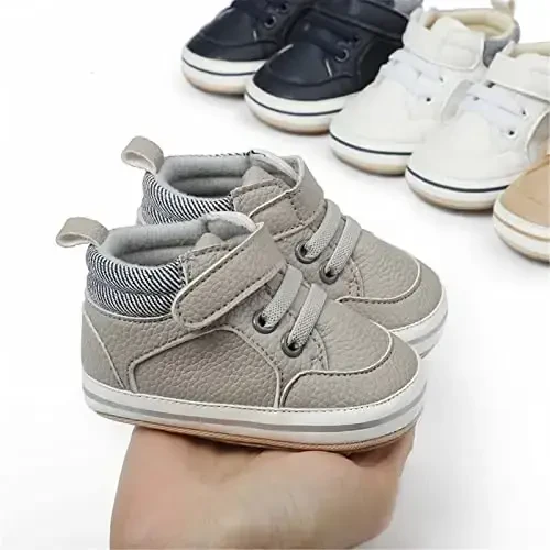 RVROVIC Baby Boys Girls Anti-Slip Sneakers, the perfect combination of comfort and style for tiny feet! Designed to support and accompany your baby's first steps, these soft-ankle boots cater to a wide age range from newborns to toddlers. Made from high-quality materials, these shoes provide all-day comfort without harming your baby's delicate skin.These adorable sneakers feature a soft and breathable sole that prioritizes your baby's foot health by maintaining the natural ground feel. This allows your baby to grow healthier by feeling closer to the ground. The comfort of their feet supports their desire to explore and play.RVROVIC Anti-Slip Sneakers are not only comfortable but also practical. The lace-up design makes them easy to put on and take off, and most importantly, they don't slip off your baby's feet. This feature is ideal for active babies and toddlers.The classic moccasin style, combined with the high ankle detail, makes these shoes suitable for any activity. Whether crawling, walking, or playing, your baby will always be stylish and comfortable. Additionally, these sneakers are one of the best birthday or baby shower gift options for babies. With their stylish design and useful features, they appeal to both parents and babies.Support your baby's steps with confidence with RVROVIC Baby Sneakers. Offering comfort, style, and practicality in one, these shoes are designed to accompany your baby on their journey of growth. Remember, choosing the right shoe is very important for your baby's foot health and development. Therefore, you can trust RVROVIC quality.These shoes are not just a shoe, but also an investment in your baby's comfort and safety. It is a friend that will support, protect, and accompany them every step of the way. Let your baby take their first steps with RVROVIC Anti-Slip Sneakers and share in their joy of growing up. This special design, which offers style and comfort in one, will be an indispensable part of your baby's wardrobe.