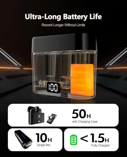Achieve professional sound quality with the Rythflo Wireless Lavalier Microphone! This dual lavalier microphone set is designed to be compatible with various devices such as iPhone, Android, iPad, and laptops. With a charging case, AI noise reduction, 50-hour battery life, and a range of up to 230 feet, this microphone set is perfect for various applications such as video recording, vlogging, and podcasting. Rythflo effectively eliminates background noise with its AI-powered noise cancellation technology, allowing you to make clear and understandable sound recordings. With 24-bit/48kHz audio resolution, 70dB SNR, and 115dB SPL values, you can achieve studio-quality sound. These features ensure that your voice is always clear and professional. The product's 600mAh charging case offers up to 50 hours of continuous recording. This long battery life eliminates energy concerns during all-day shoots or podcast recordings. With a powerful and stable wireless range of up to 230 feet, you can move freely and record uninterrupted audio. Low latency (under 0.02s) and no signal loss ensure professional-quality recordings. The Rythflo Wireless Lavalier Microphone is compatible with devices with both Lightning and Type-C ports. This allows you to easily connect to most smartphones, tablets, and laptops, including the iPhone 15/16 series. The microphone is extremely easy to use; just clip it to your collar, connect it to your device, and start recording. Its compact design and charging case make it easy to carry and store neatly. Rythflo places great importance on customer satisfaction. If you experience any issues, it offers fast and effective support. You can contact the Rythflo team for any questions or issues regarding your product or refer to the contact information in the user manual. Take your sound recordings to the next level and produce professional-quality content with the Rythflo Wireless Lavalier Microphone. Whether you're vlogging, podcasting, or just want better sound quality, this microphone set offers everything you need. Additional protection plans are also available for your product with Asurion coverage. These plans protect against malfunctions, drops, liquid contact, and screen breakage. With an easy application process and quick solutions, you can ensure your product always works smoothly. Asurion protection plans can be activated within 30 days of purchasing your product and do not cover pre-existing damage. For detailed information, please refer to the product manual or your Amazon orders.