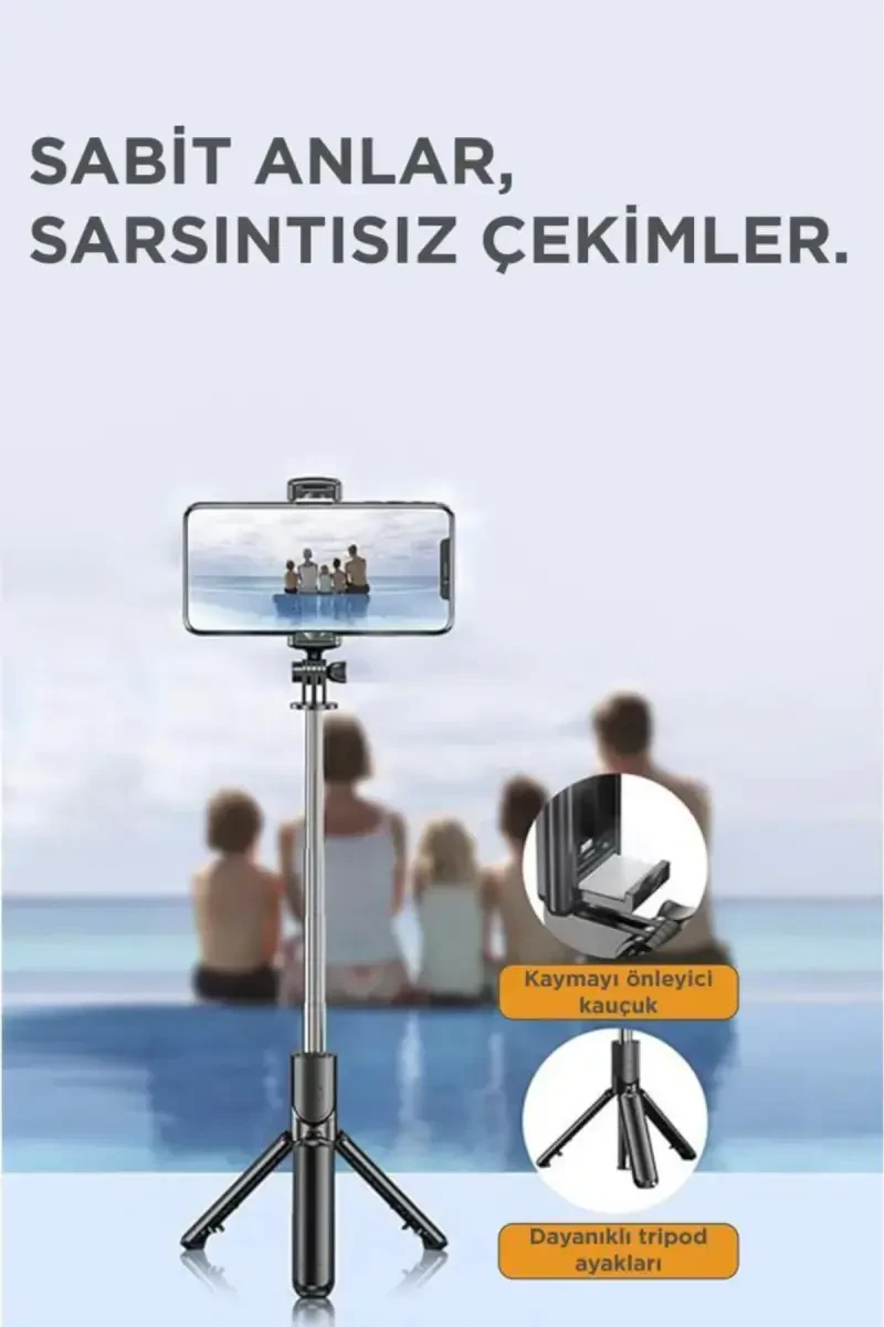 S03 Masofadan boshqariladigan simsiz Selfie Stick fotosuratlaringiz va videolaringizni yanada ijodiy va qiziqarli qilish uchun mo'ljallangan. Bu qulay qurilma sizga telefoningizni xavfsiz tarzda o'rnatishga va mukammal burchaklardan suratga olishga imkon beradi.