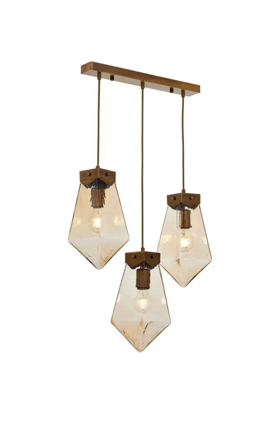 Şah 3'lü Bal Renk Cam Eskitme Sıralı Sarkıt Avize, evinizin göz alıcı bir parçası olacak ve konuklarınızın hayran kalacağı bir atmosfer yaratacaktır.