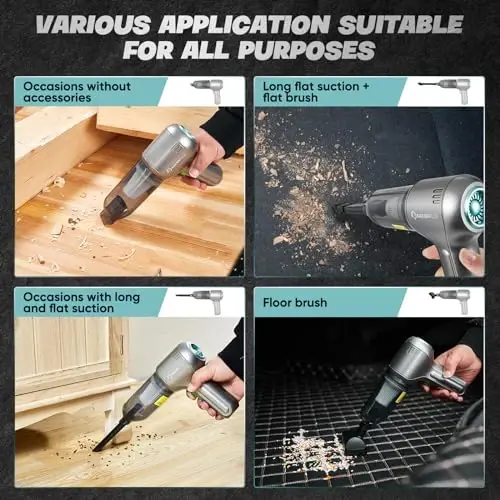 SakerPlus Avtomobil Vakuum Tozalagich - Simsiz Qo'l Avtomobil Vakuumlarining Eng Yaxshi So'rish Qobiliyati, Cho'tkalarsiz Motor 12000PA Maksimal Quvvat, 3 ta 1 da Mini Portativ Simsiz Vakuum Tozalagich Uy, Ofis, Oshxona, Avtomobillar Uchun