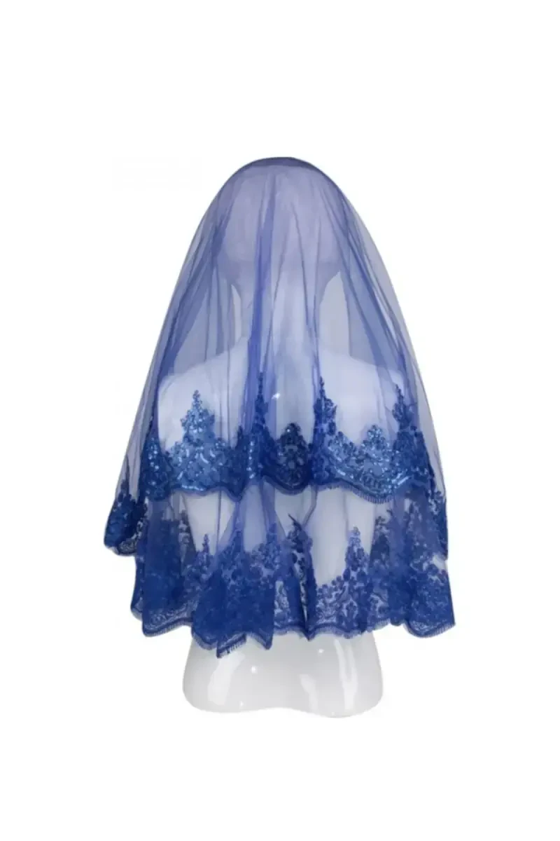 Сакс Синий Комплект Свадебной Фаты с Кружевом | Специальный для Свадьбы и Ночи Хны