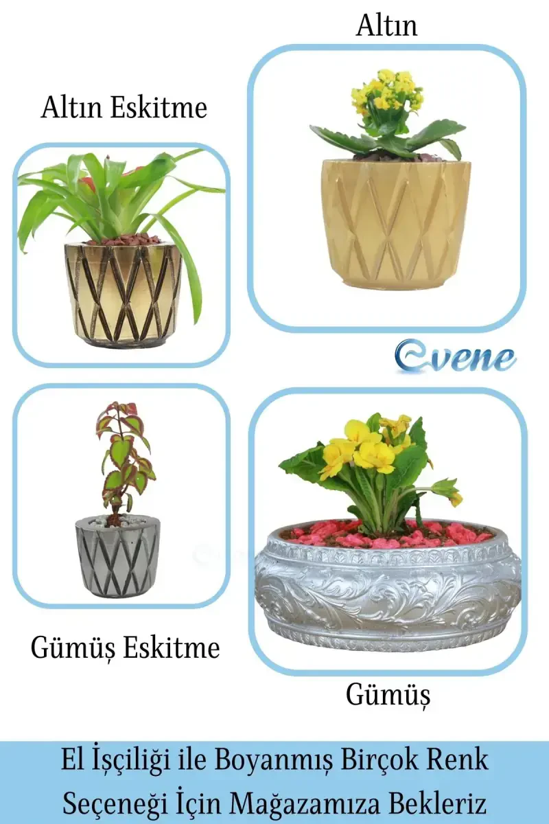 Evinize Sanat ve Zarafet Katın: Evene Dekoratif Çiçek Saksıları ile Mekanınızı Baştan Yaratın. Evene'in dekoratif çiçek saksısı koleksiyonu, yaşam alanlarınıza zarafet ve prestij katmanın en özel yolu. Her bir saksı, bitkilerinizin doğal güzelliğini en sanatsal şekilde sergilemek üzere tasarlanmış, sıradan bir obje olmaktan çok daha fazlasını sunar. İç mekanınıza ruh katan, estetik bir yaşam tarzı beyanıdır. Modern ev dekorasyonu ve kişisel alan şıklığı arayışında olanlar için Evene, beklentilerin ötesine geçen bir tasarım ve estetik anlayışı sunar. Evene dekoratif saksı, evinize karakter katarak yaşam kalitenizi artırır. Taş tozu malzemesi sayesinde dayanıklı ve uzun ömürlü kullanım sunan bu premium saksı, yıllarca ilk günkü ışıltısını koruyacak. Yuvarlak tasarımı ile modern ve şık bir görünüm sağlar, mekanınıza sofistike bir dokunuş katar. İnce çizgili spiral modeli, bitkilerinizi ön plana çıkararak doğal güzelliklerini sergilemenize olanak tanır, adeta bir sanat eseri gibi. Özellikle gold saksı sevenler için altın rengi detayları ile dikkat çekici bir parlaklık ve zarafet sunar. Bu büyük saksı veya mini saksı seçenekleriyle, her köşede, salon saksısı ya da balkon saksısı olarak bile, estetik bir vurgu yaratır. Evene çiçek saksısı sahibi olmak, sadece bir ürün almak değil, aynı zamanda Evene ailesinin bir parçası olmaktır. Yaşam alanınıza değer katan bu sanatsal saksı, size huzur veren, ruhunuza dokunan bir atmosfer yaratır. Hayatınızdaki sıradanlık endişelerini bir kenara bırakın ve Evene'in size sunduğu bu eşsiz güzelliklerle ruhunuzu besleyin. Evene premium ev dekorasyon ürünleri ile kendinize bir iyilik yapın ve yaşam alanlarınızda fark yaratın. Viselia güvencesiyle sunulan bu özel saksı, evinizin her köşesine zarafet katacak. İster salonunuzda, ister balkonunuzda, isterseniz de bahçenizde kullanın, her ortamda dikkatleri üzerine çekecek. Gümüş renginin asilliği ve modern tasarımıyla, bitkilerinizle mükemmel bir uyum yakalayacak. Büyük boyutu sayesinde, bitkilerinizin rahatça gelişmesine olanak tanırken, şık görünümüyle de dekorasyonunuzu tamamlayacak. Bu saksı, sadece bir çiçek kabı değil, aynı zamanda bir sanat eseridir. Evinize gelen misafirlerinizin hayranlığını kazanacak, yaşam alanlarınıza değer katacaktır. Üstelik, dayanıklı malzemesi sayesinde uzun yıllar boyunca kullanabileceğiniz bir üründür. Trendyol'a özel bu fırsatı kaçırmayın ve evinize Evene kalitesiyle şıklık katın. Unutmayın, bu üründen en fazla 10 adet sipariş verebilirsiniz. 15 gün içinde ücretsiz iade imkanıyla, risksiz bir alışveriş deneyimi yaşayabilirsiniz. Evene ile dekorasyonunuzu bir üst seviyeye taşıyın!